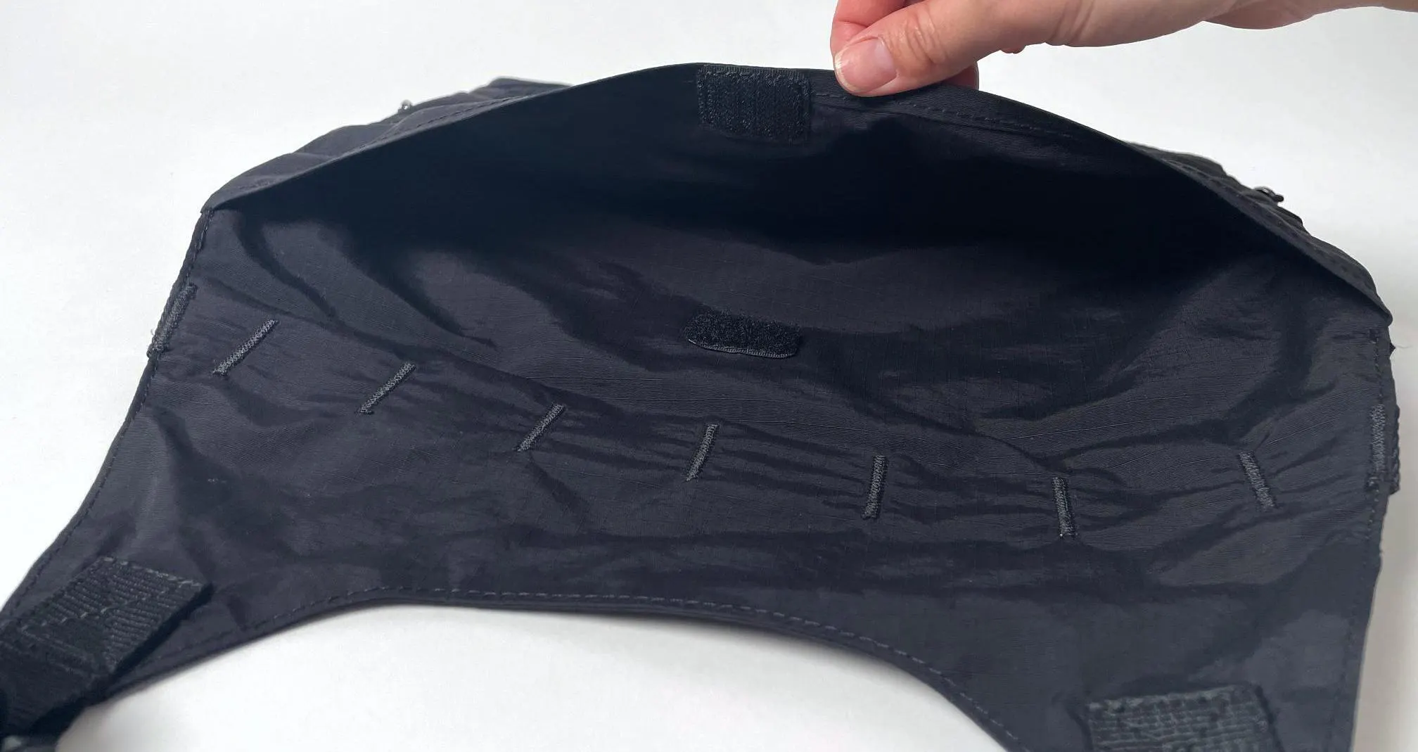 フラップ部分は面ファスナーで開閉する仕様。