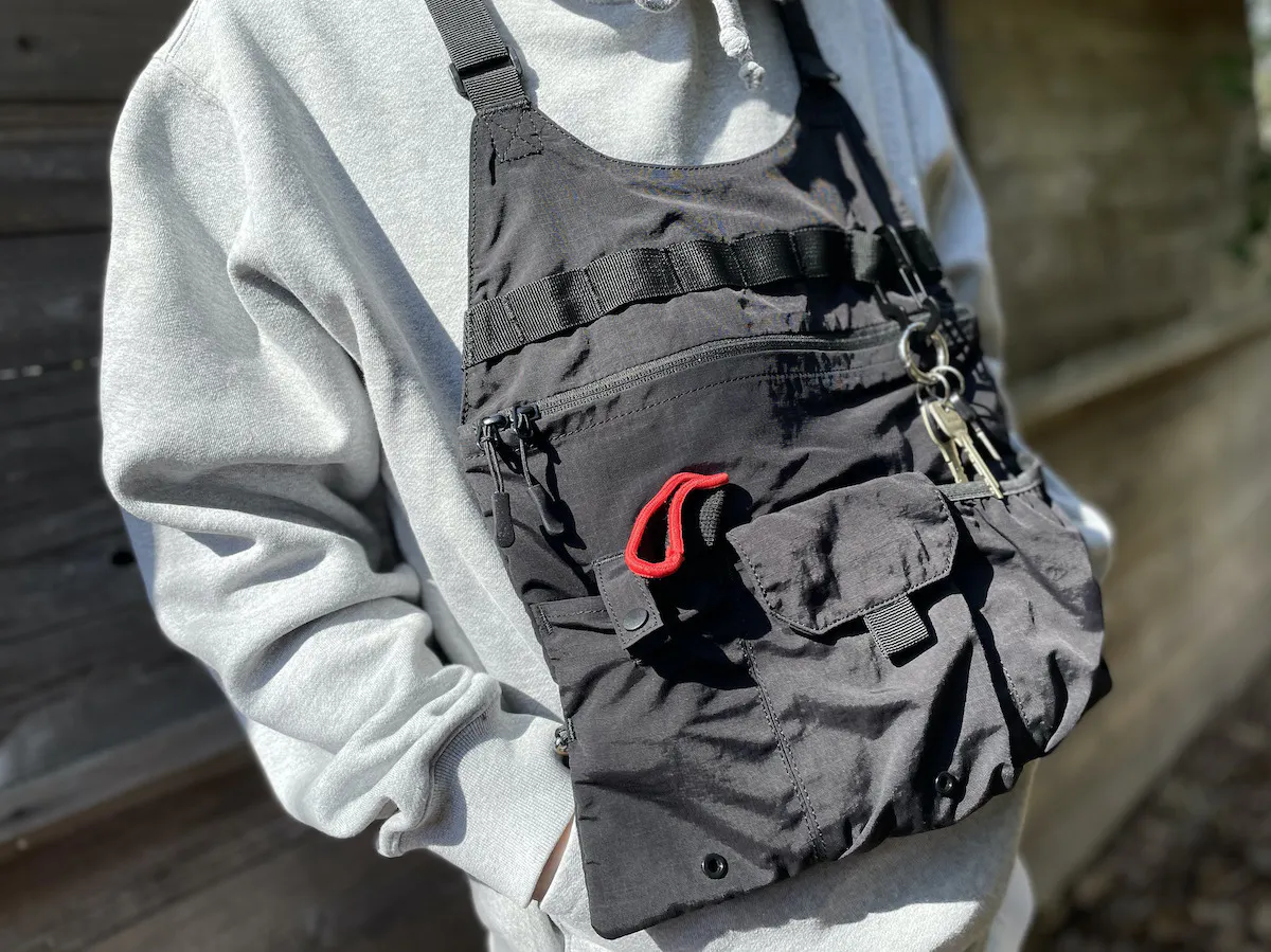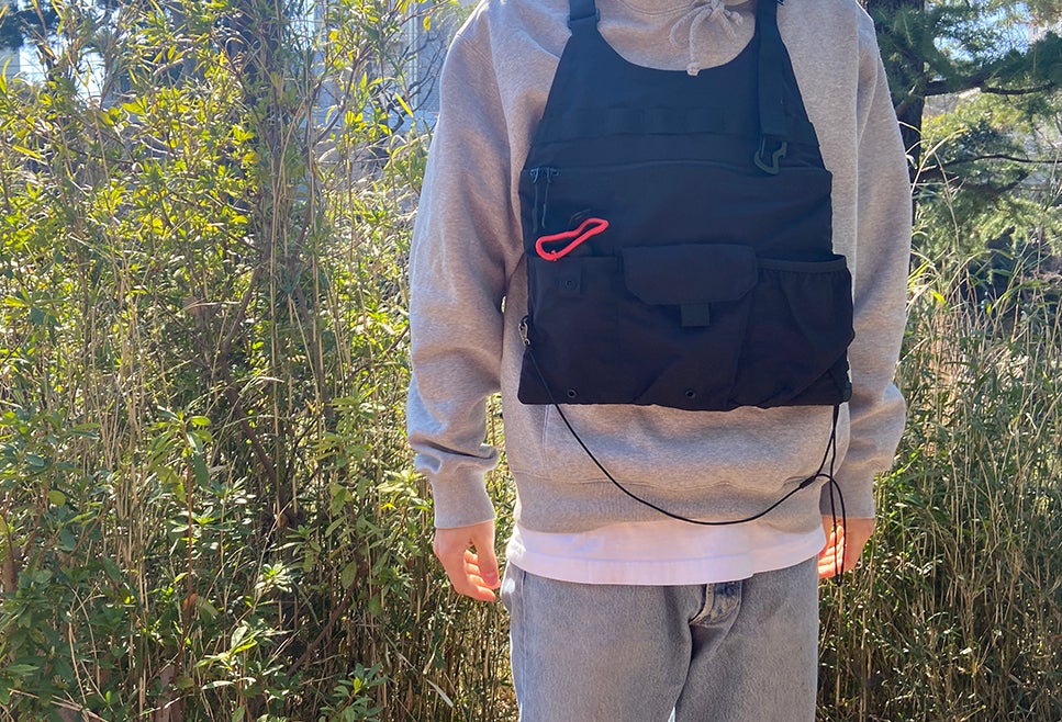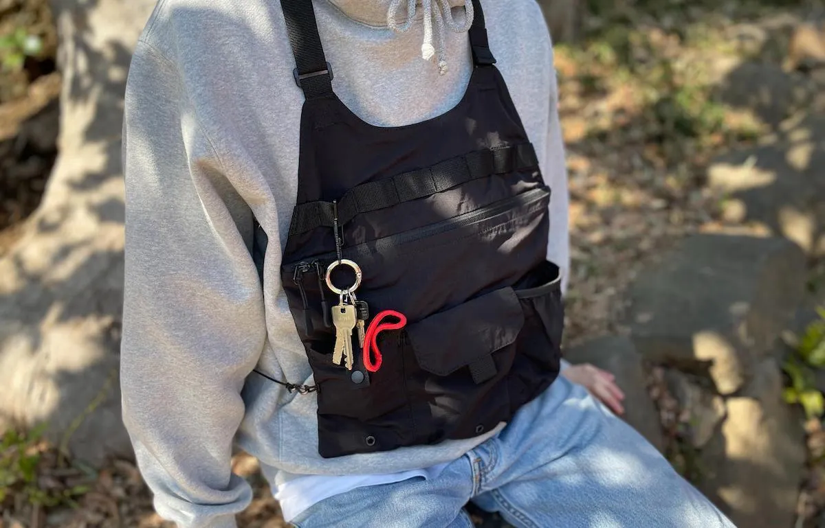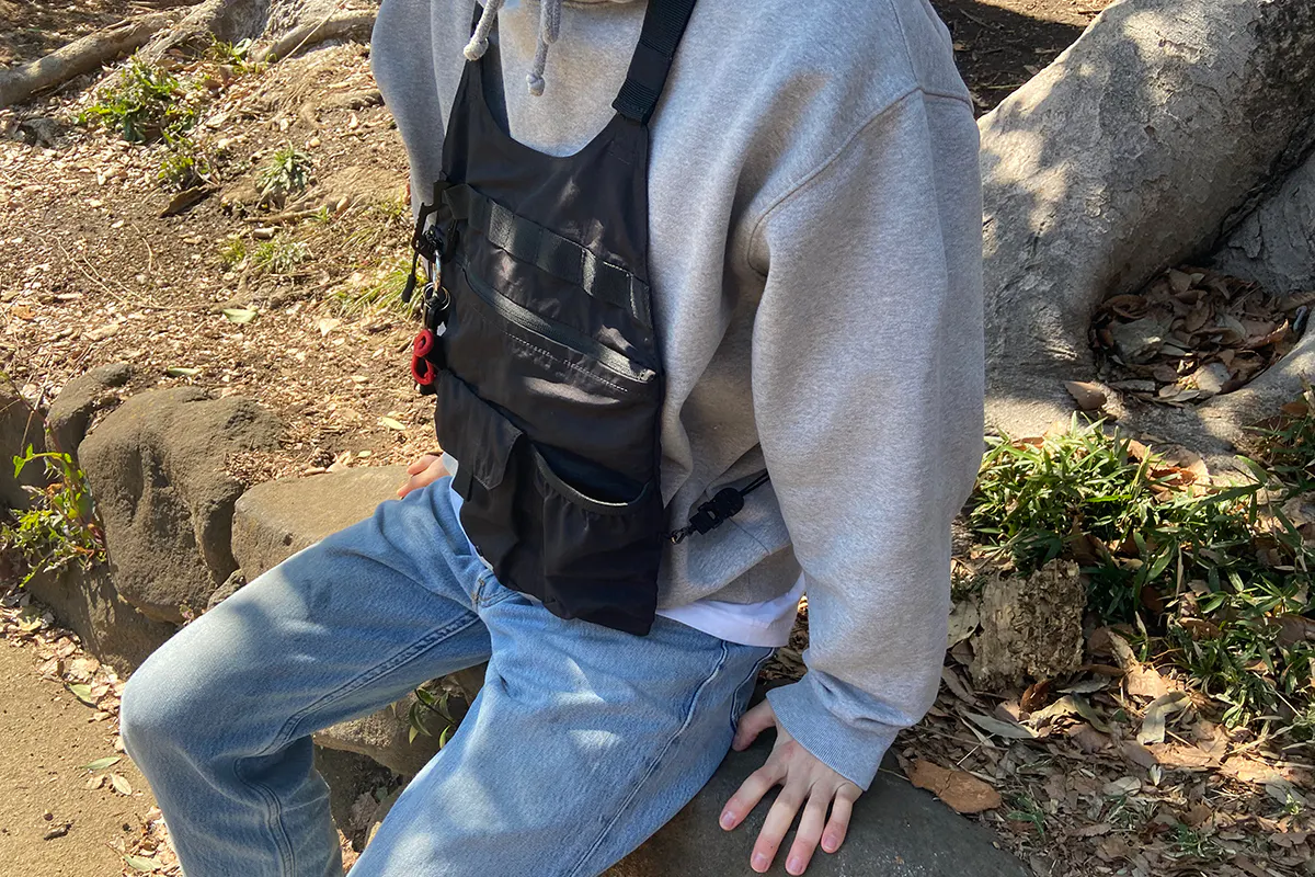 アウトドアシーンにも普段着にも、バッグのように使えるベスト。薄くて軽くてスタイリッシュなデザインなのに、見た目以上の収納力も。
