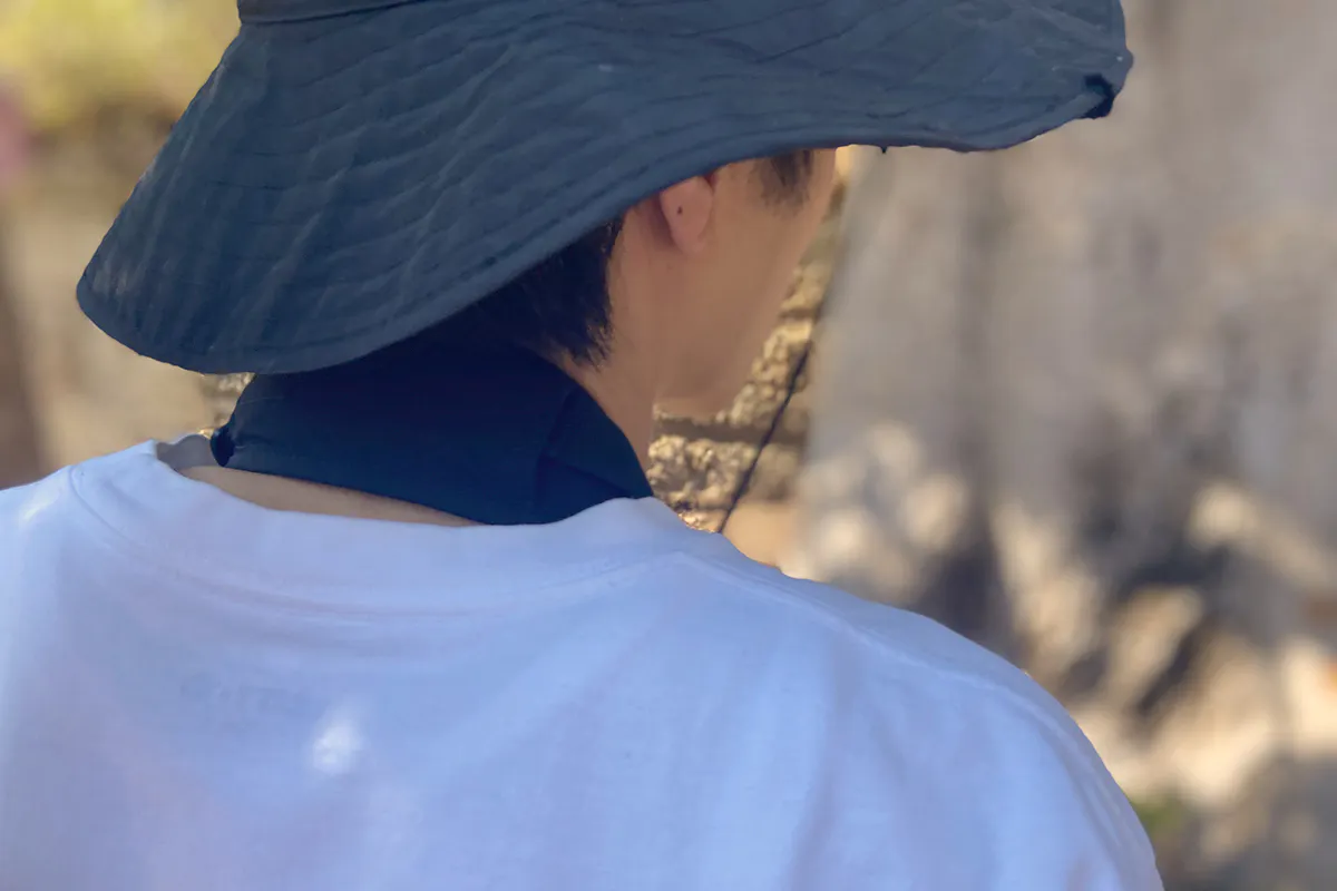 通気性にも配慮して、首あての裏側はメッシュ仕様。