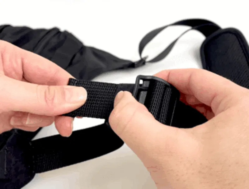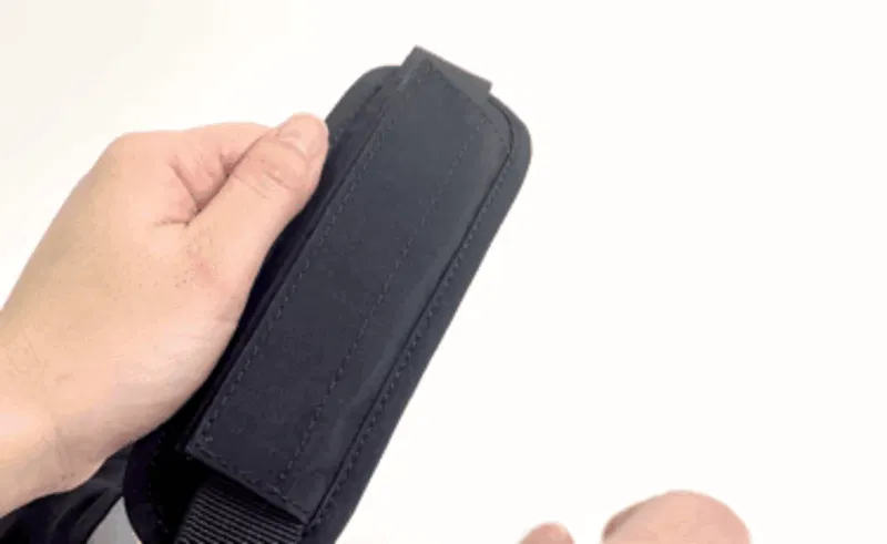 カチャっと差し込むだけのアジャスター仕様で、腰ストラップを着けても着けなくてもカスタマイズが可能。