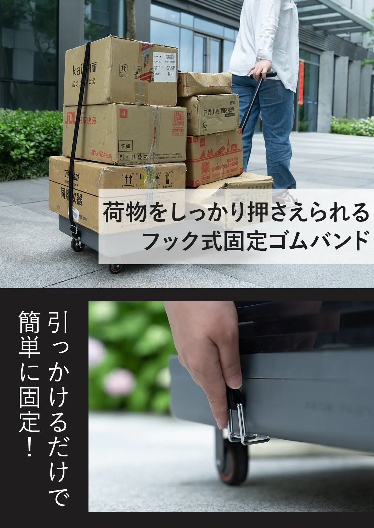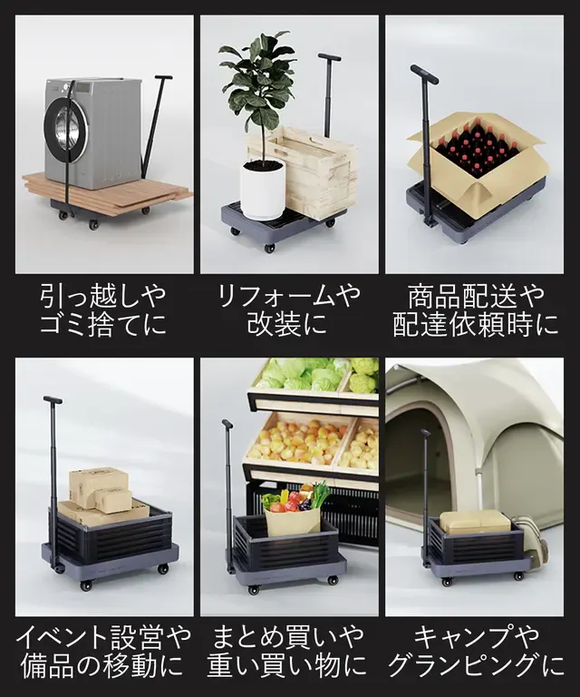 大量の段ボールや重たい荷物もこれひとつで簡単に運べます。