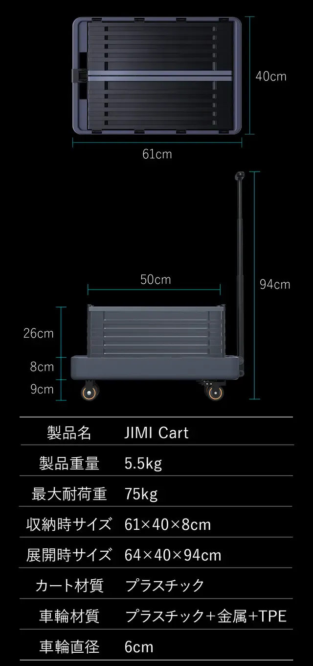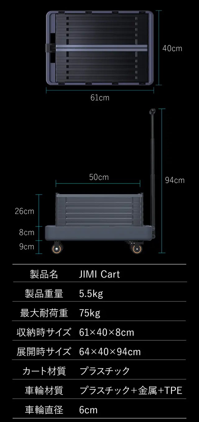 JIMI Cartは日常生活で使いやすい、コンパクトでシンプルな2wayキャリーカート。