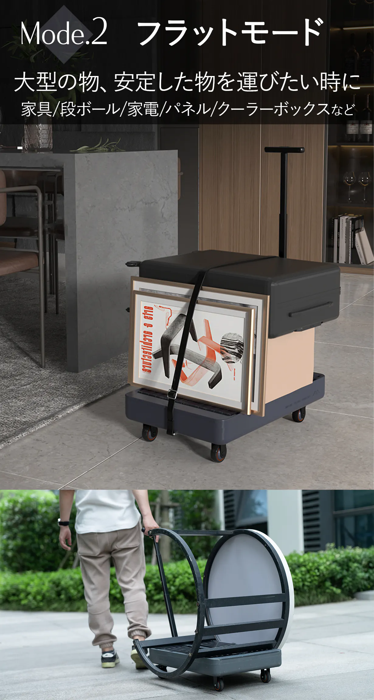 安定した形状のものや、大きいものを運ぶのに便利なフラットモード!