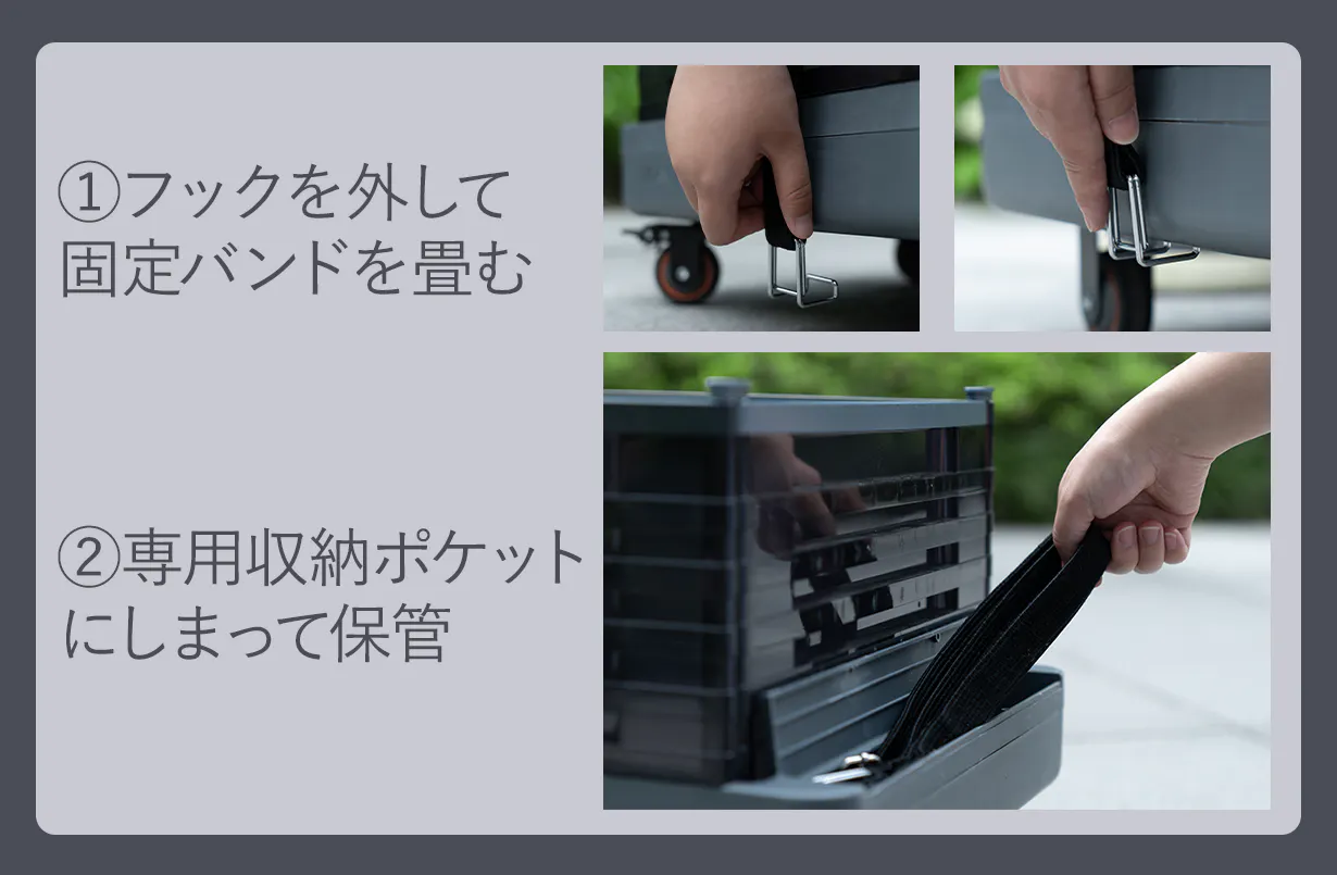 そんな時に専用固定ゴムバンドを使用すればしっかり押さえながら移動できます!