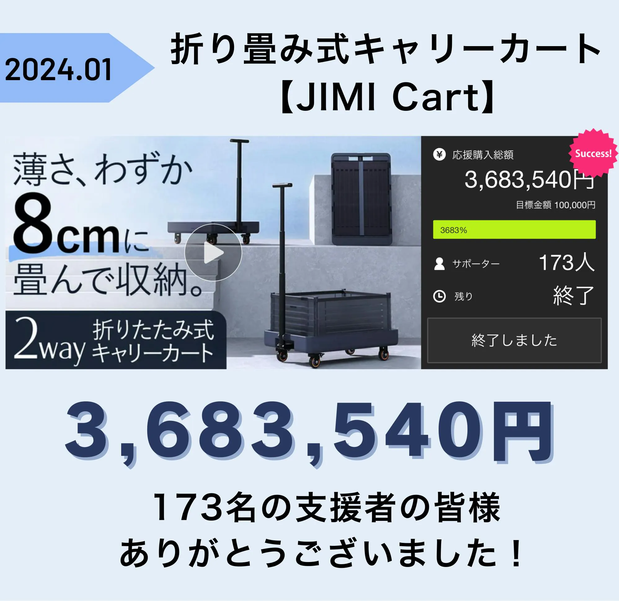 JIMI Cartで皆様の日常生活やお仕事がもっと楽になることを願って今回プロジェクトを実施させていただきます。