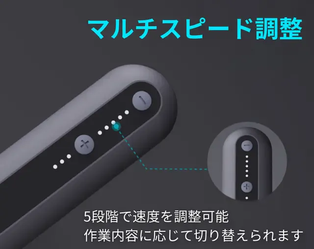 JIMI GRINDER SETは5段階でスピード調整が可能となっており、作業内容に応じて適切な速度を選択できます。