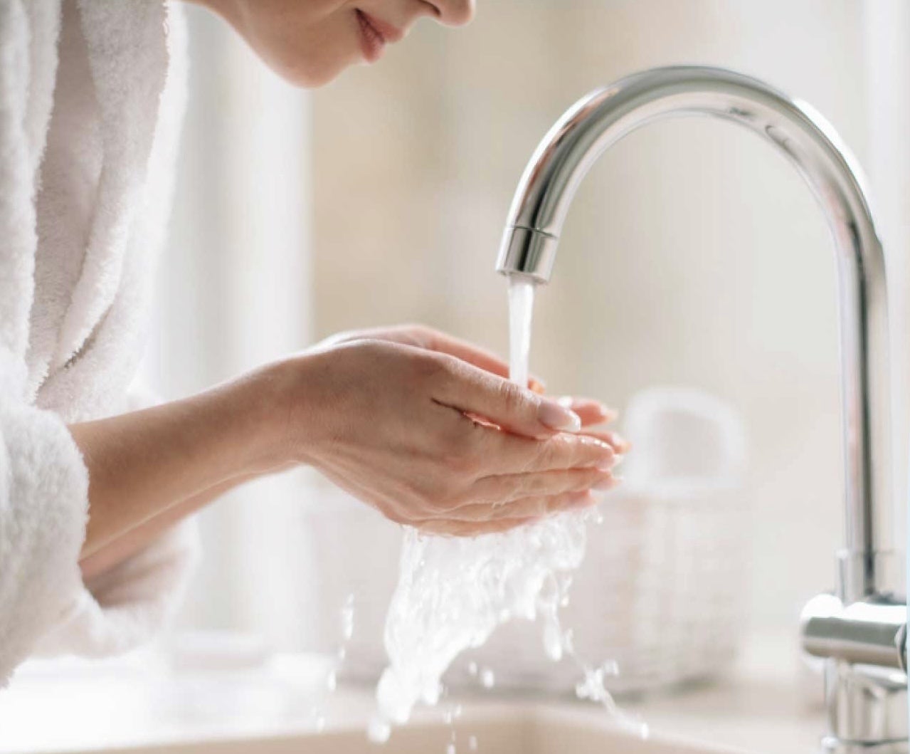 近年『水飲み美容法』など、水を使った美容法が注目されています。年を重ねるとともに、ヒトの体の中の水分量は減少していくので、潤いのある肌を保つために、十分な水分補給は必要不可欠です。