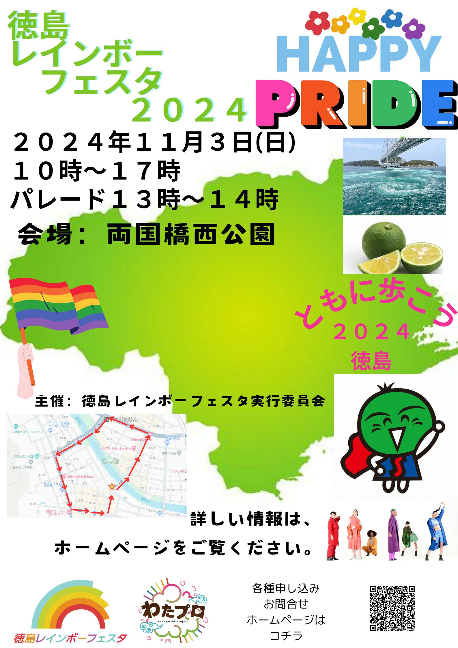 いろんな人がいて当たり前。そんな常識を作りたい。自分らしく生きるために徳島から発信していきたい、LGBTも含めたすべての人が暮らせる社会へ生きる子供たちが悩まなくていい世の中を一緒に作りましょう。11月のパレード開催のため、みなさまからのご支援・ご協力をお願いいたします!今年のテーマは「~ともに歩こう2024~」です。昨年、「ここにALLday」を掲げスタートした徳島レインボーフェスタは、ここにALLdayを基本テーマとして活動を行っています。