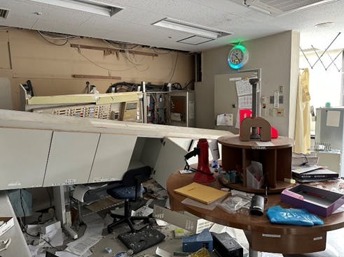 被害は想像をはるかに超え、老朽化した建物は勿論、設備や医療機器の破損、1階の1部と、2階介護医療院部分は現在も使用できません。