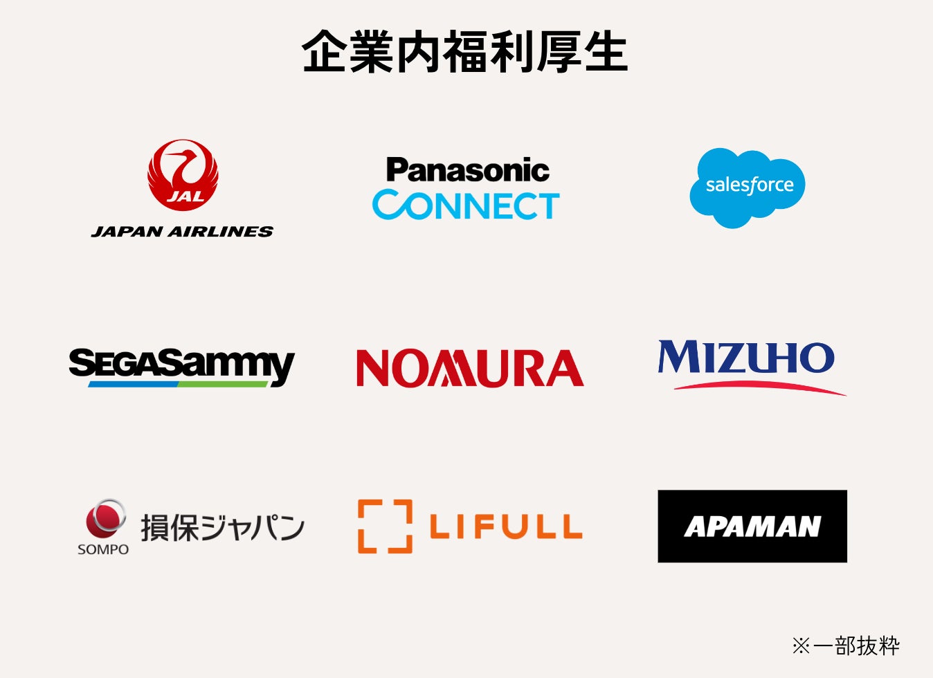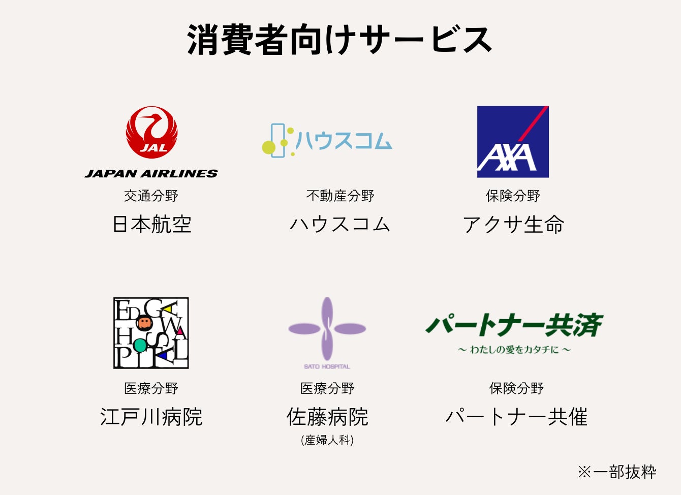 大手企業や自治体による企業内の福利厚生サービスや、住宅・保険・医療分野の消費者向けサービスへの適用など、既に100社を超える企業・病院・自治体が多様なかぞくのみらいを実現する仲間として参画しています。
