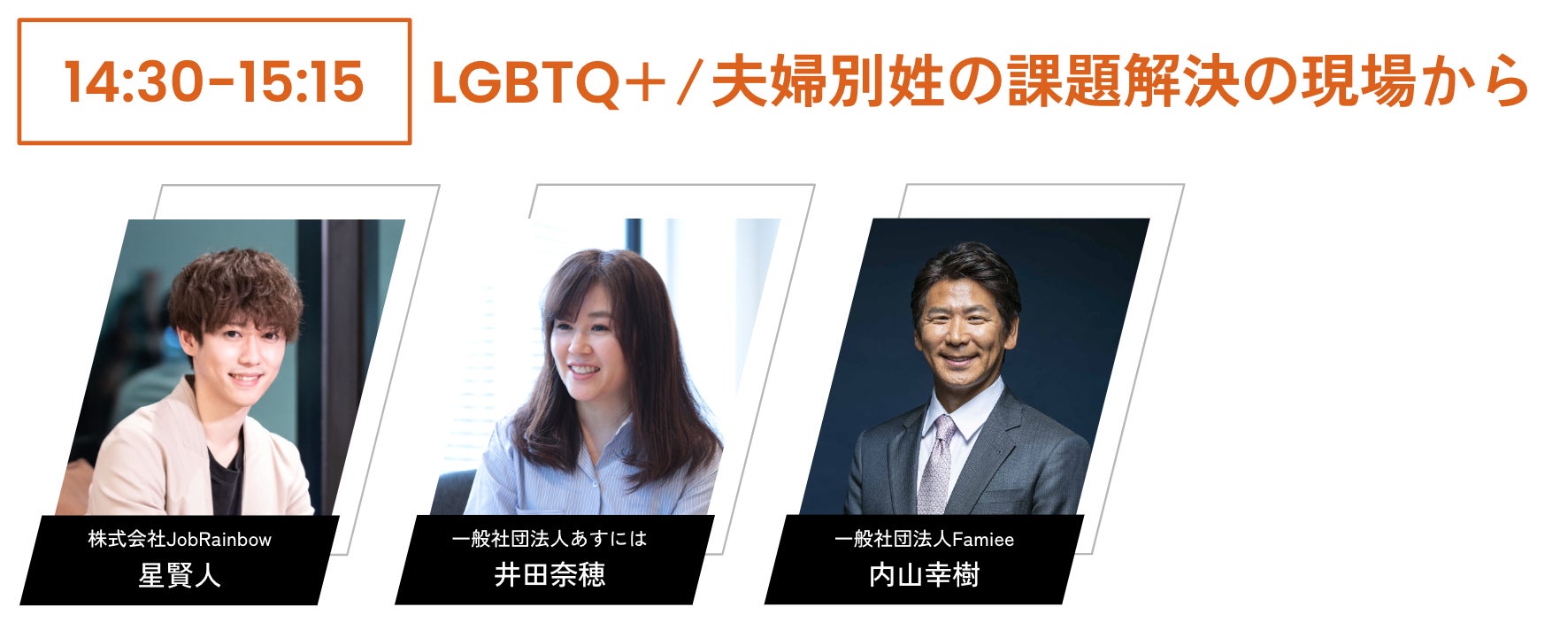 LGBTQ+の当事者向けの就活・転職サイト「Job Rainbow」代表の星賢人さんと、LGBTQ+ / SOGIEに関する企業・自治体施策のサポートを行い、社会・職場のD&Iを目指すレインボーノッツ合同会社・代表の五十嵐ゆりさんをお招きし、企業・自治体のD&I実現の最前線について学ぶオンラインイベントです。