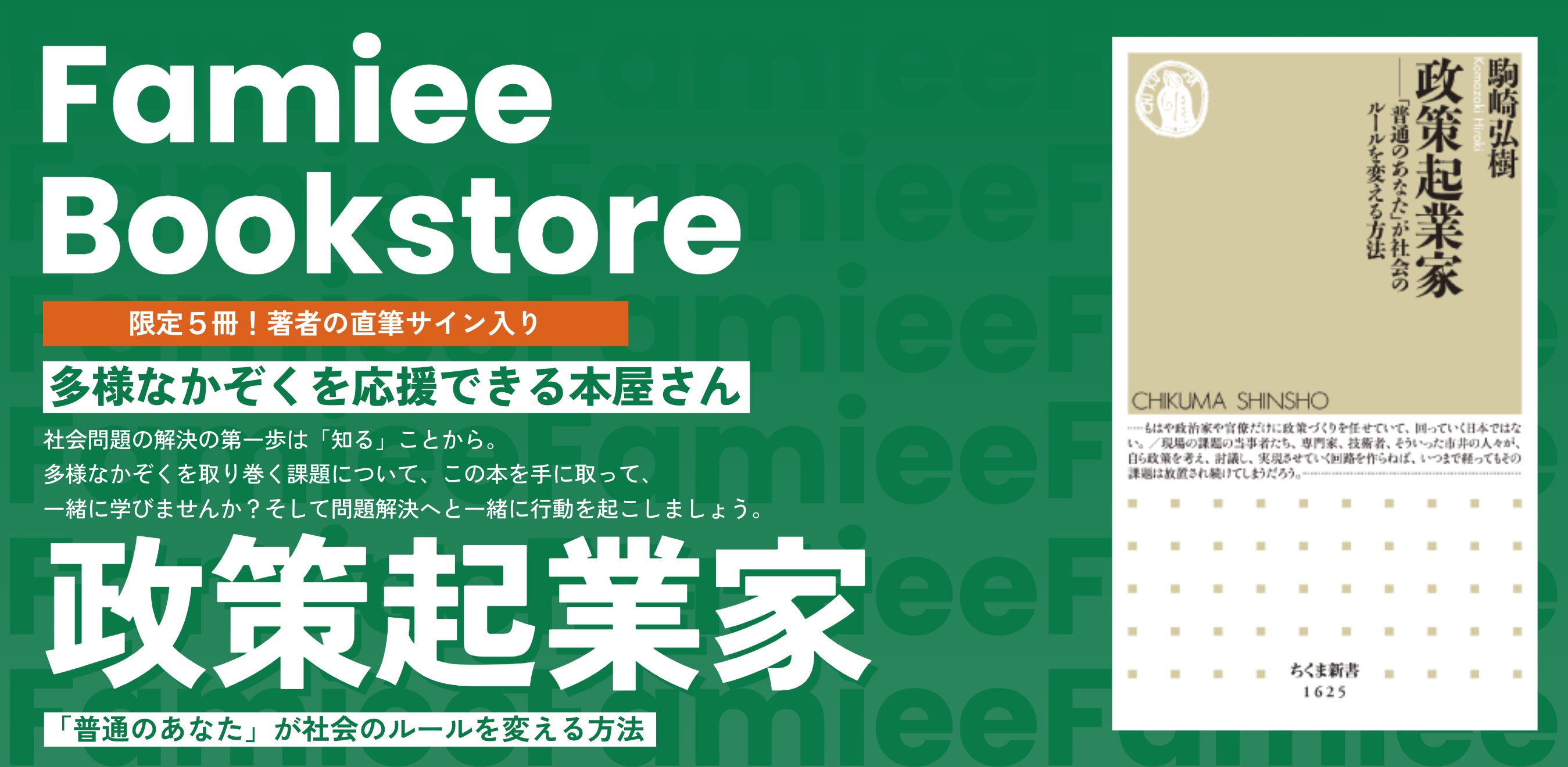 社会問題の解決の第一歩は「知る」ことから。多様なかぞくを取り巻く社会について、この本を手に取って、一緒に学びませんか?そして問題解決へと一緒に行動を起こしましょう。直筆サイン入りの書籍を数量限定で販売します。