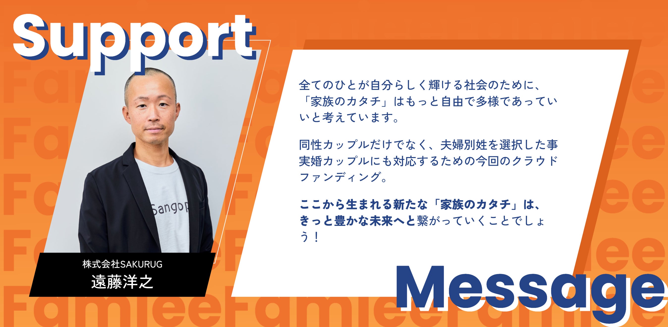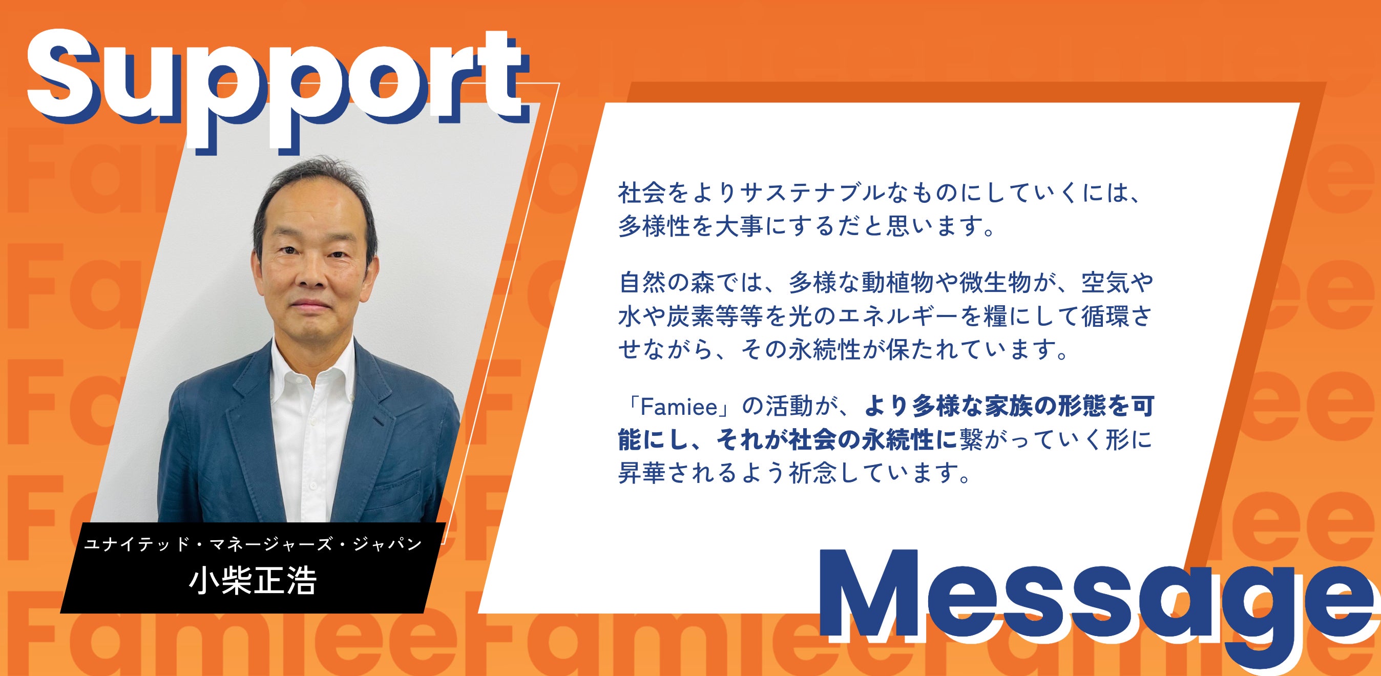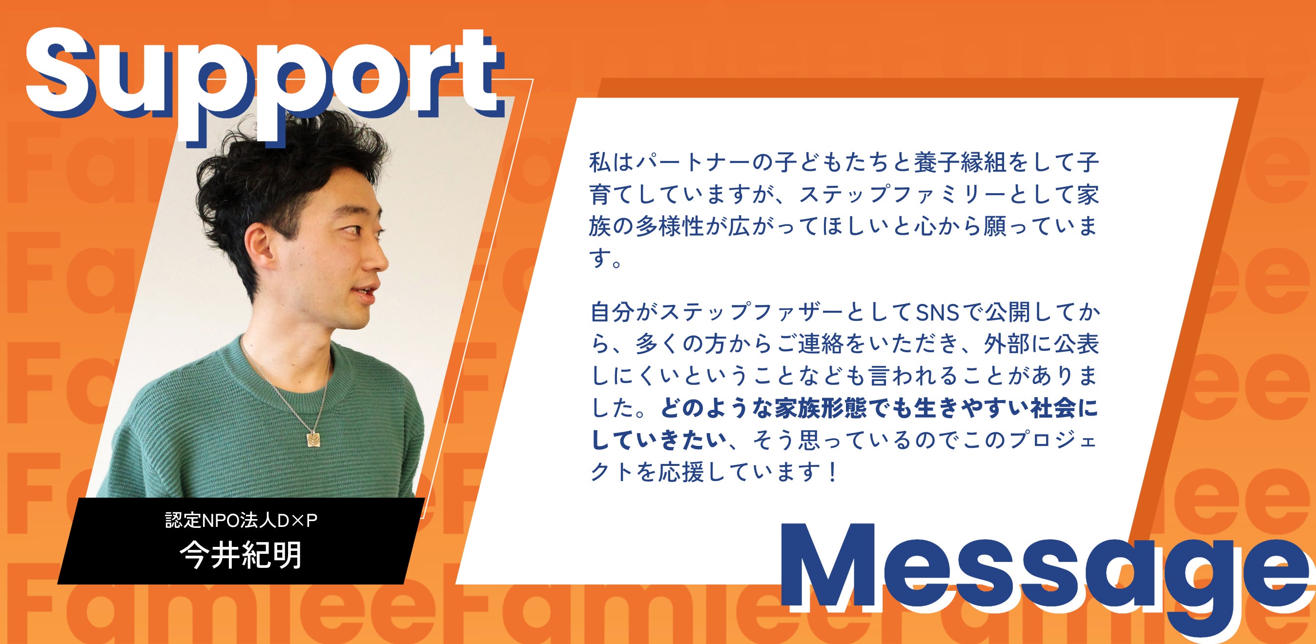 「UPDATE Famiee PROJECT」にはそんな想いを込めました。一人でも多くの仲間たちと、このムーヴメントを拡げていきたいと思います。ぜひご支援・協力のほど宜しくお願いします。
