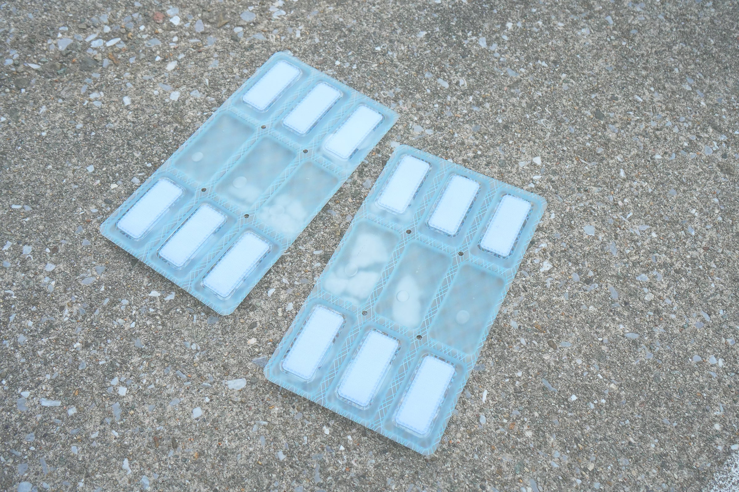 液体が極端に偏らないように、細かなブロックにPCMを分け、冷却が均一になるようにデザインしています。また、PCMを分けているブロックは体に優しくフィットし、広い範囲でのひんやり感を実感いただけます。