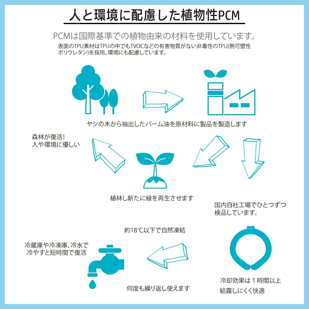SUO Z クールベストに使用しているPCMは、ヤシ系のパーム油から抽出した植物由来のPCMを使用しています。人にやさしく、環境に優しくをコンセプトに商品を作っています。
