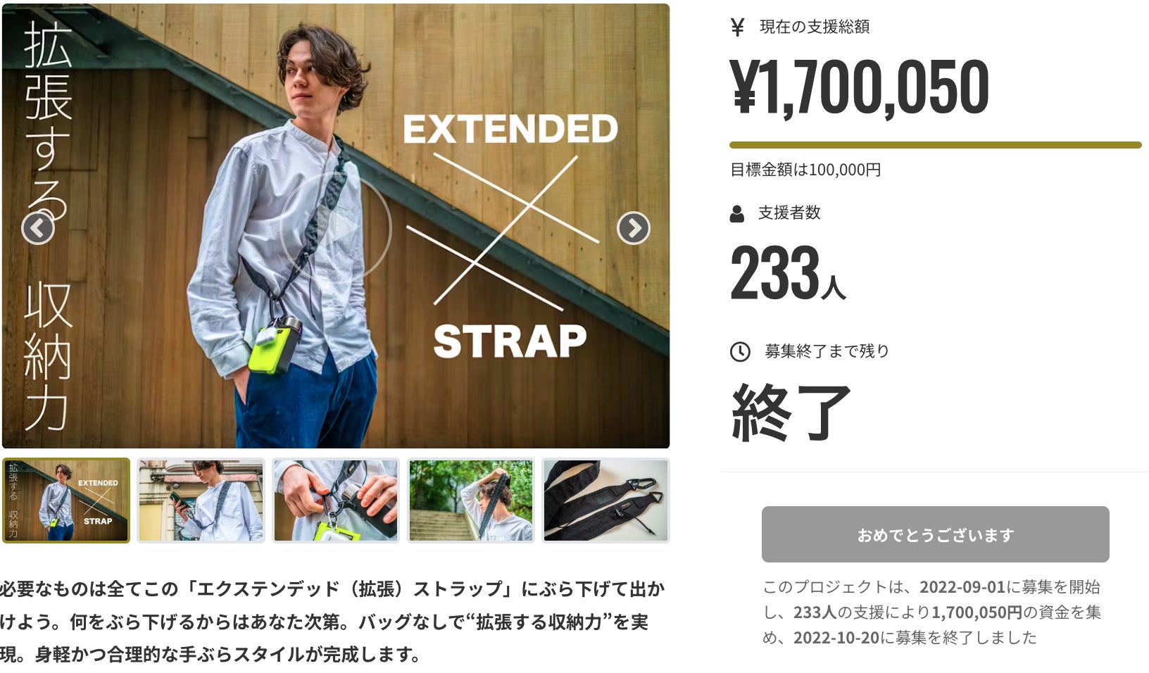 手ぶらスタイルをこよなく愛するメンバーで試作ストラップを毎日使用し、使いやさすさを追求した第一弾は233名の方にご支援いただきました。