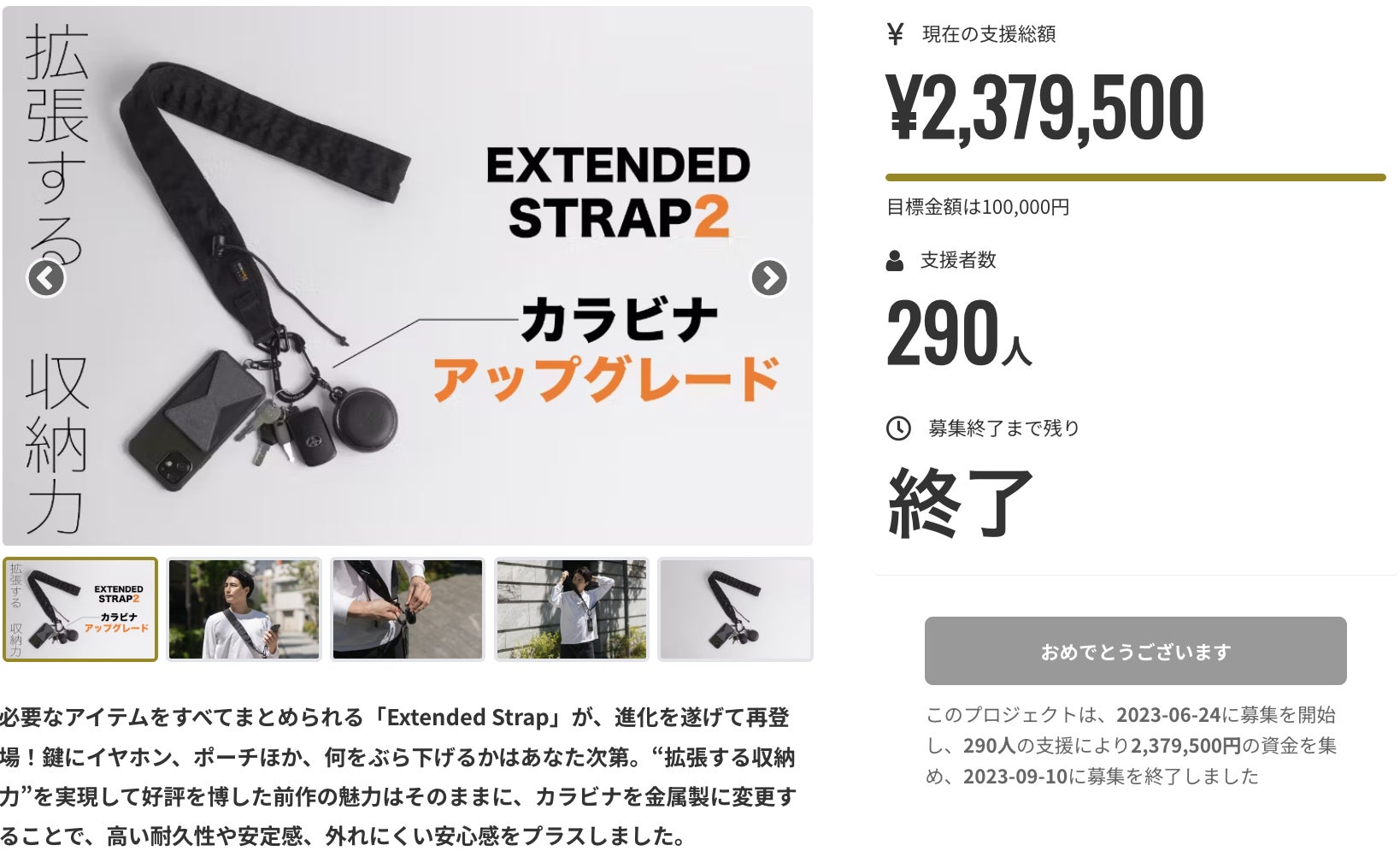 この第一弾を改良して高い耐久性や安定感、カラビナ部分をアップデートした第二弾は、2023年にプロジェクトをスタート。290名の方にご支援いただきました。
