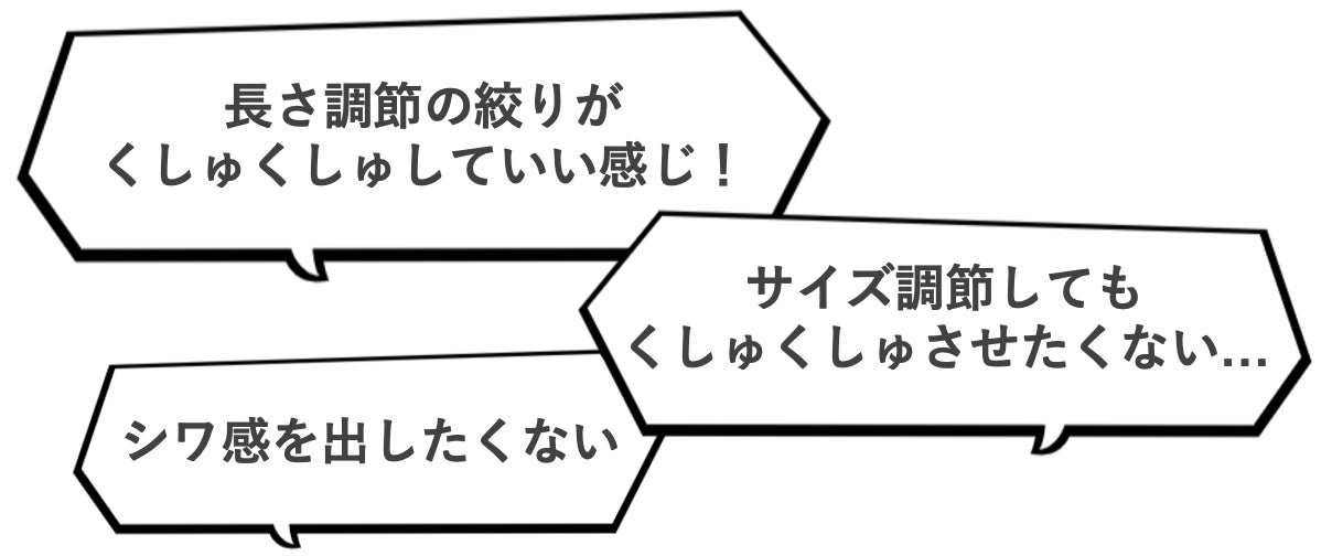 これまでと同じ、くしゅくしゅっと絞るタイプの長さ調節機能。