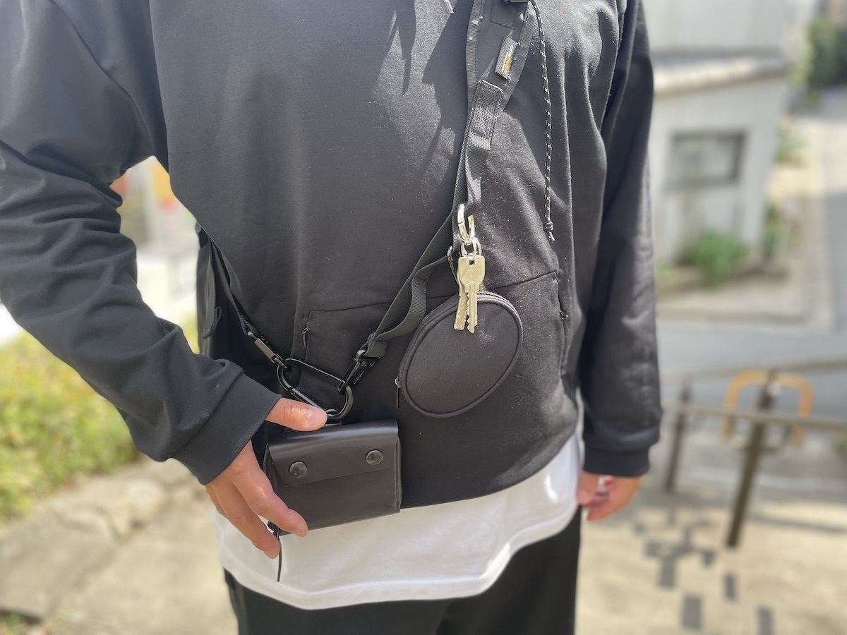 Dカンで装着すればポシェットのような趣で、支払い時などのアクセスが簡単です。