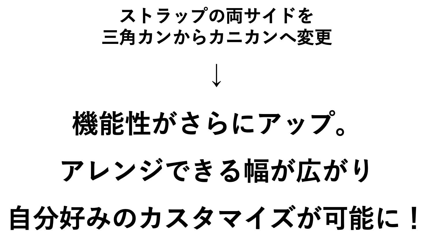 ストラップの両サイドを三角カンからカニカンへ変更。