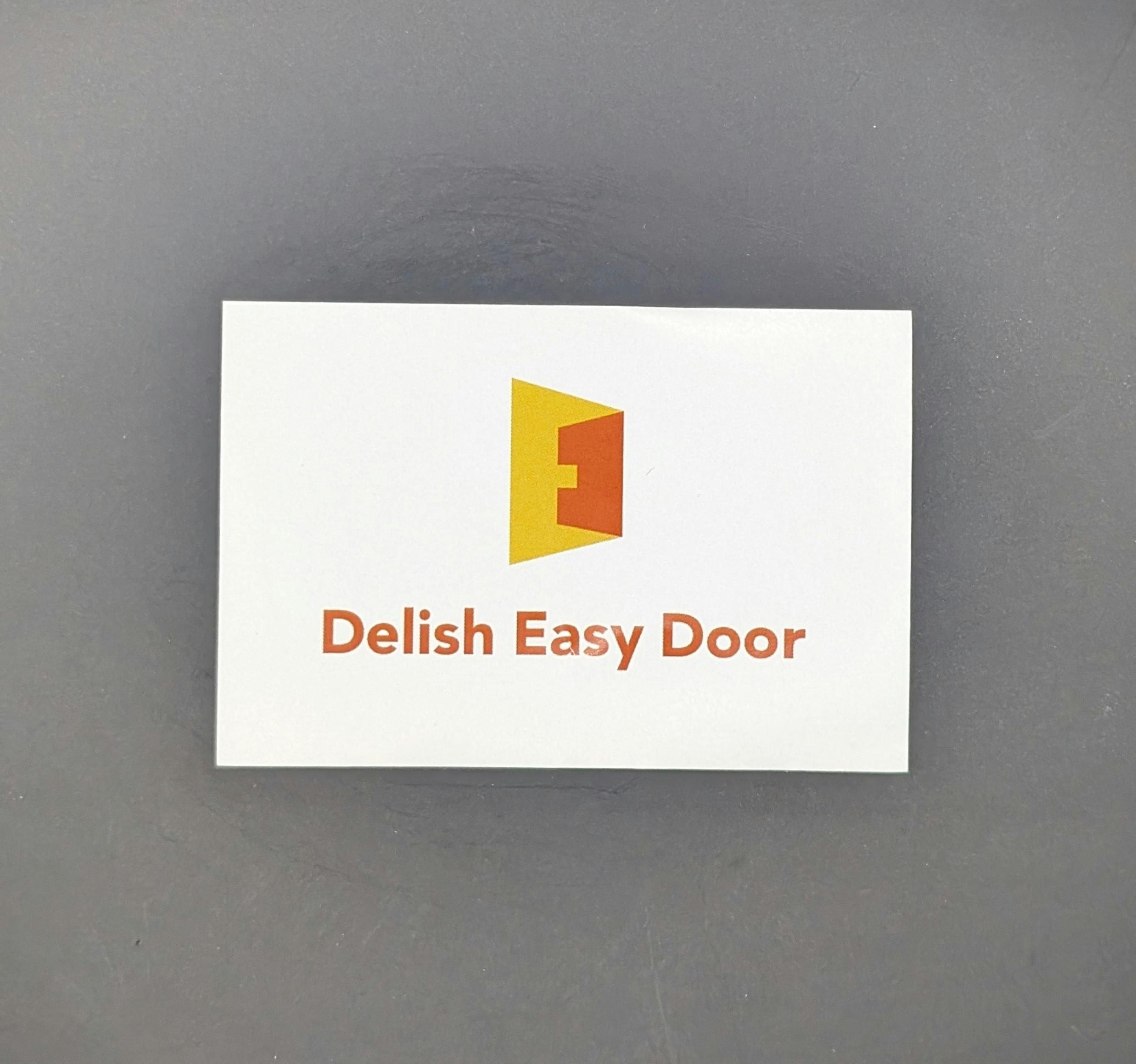 DelishEasyDoorのアイデンティティを象徴するロゴステッカーを2枚お届けします。