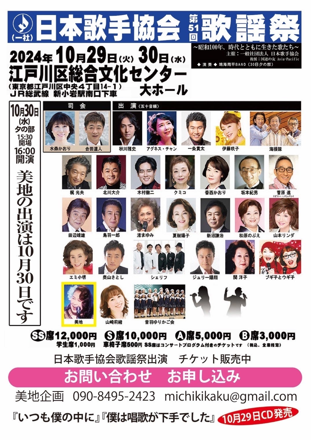 日本歌手協会の歌謡祭10月30日に『いつも僕の中に』を歌います。