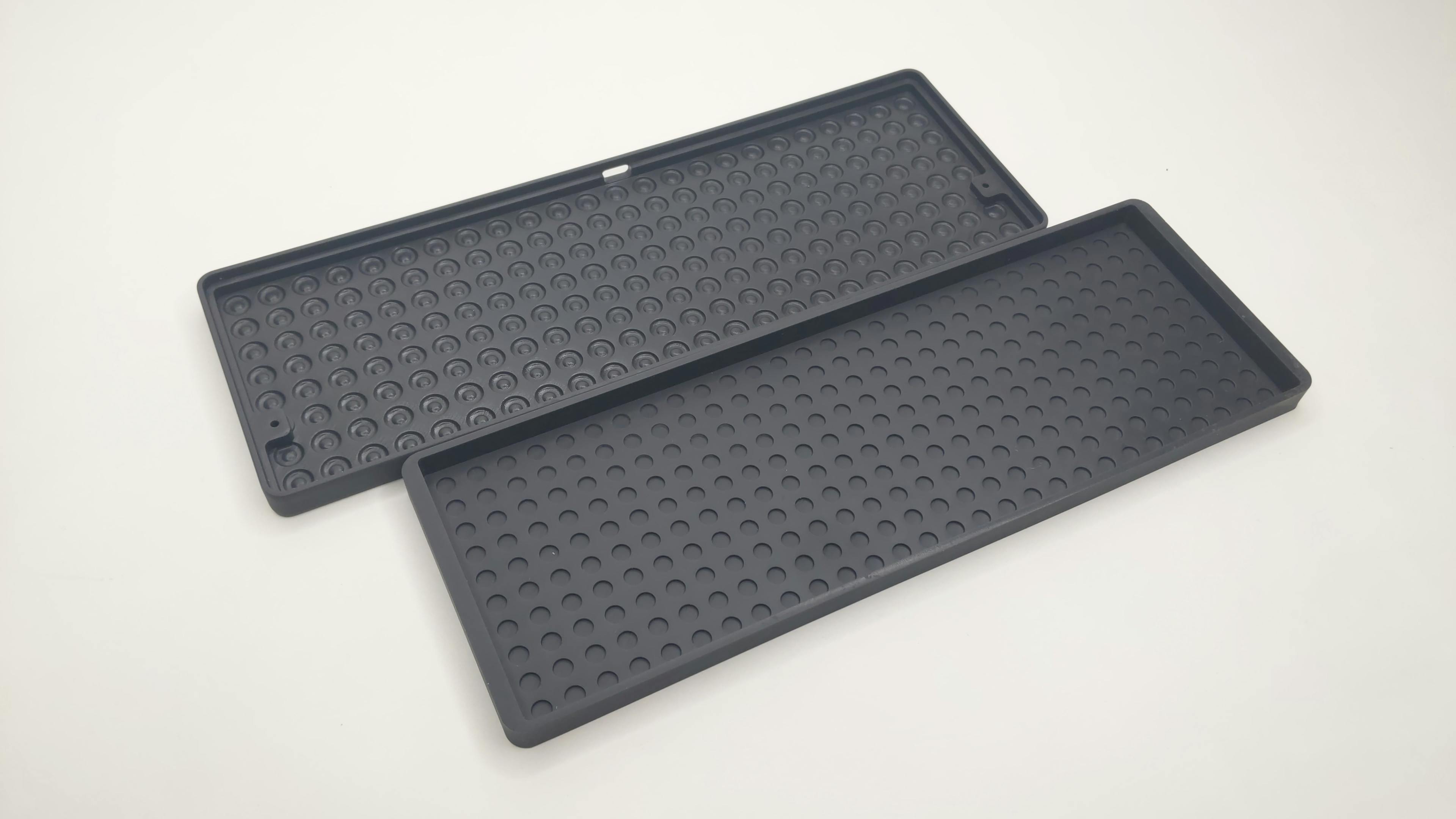 16mmキーピッチに、汎用的なデザインではないPCキーボードデザインのために、既存の方法だと製造コストが高くなってしまいました。なるべく価格を抑えるために、光積層方式と呼ばれる3Dプリント技術を使うことで、製造コストを安く抑え、またキーキャップのバリエーションを増やすことに成功しました。