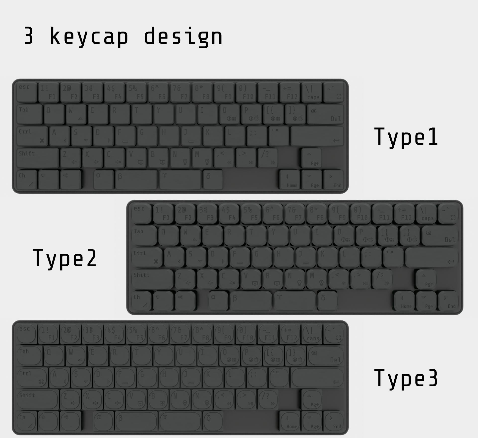 #3種類のデザインのキーキャップ