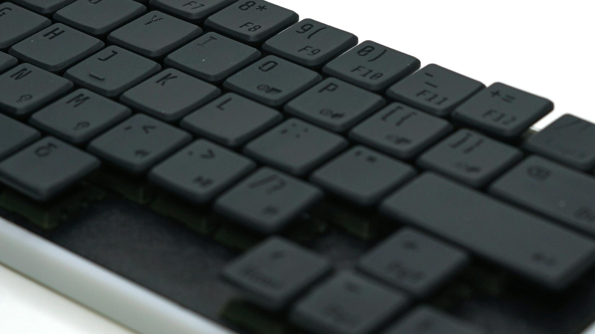 Nylon Black キーキャップは処理工程で表面加工(ブラストグラインディング)を行います。その過程でどうしても削りすぎな箇所が出来てしまい、キーキャップの刻印などが削れ過ぎてしまうことがあります。