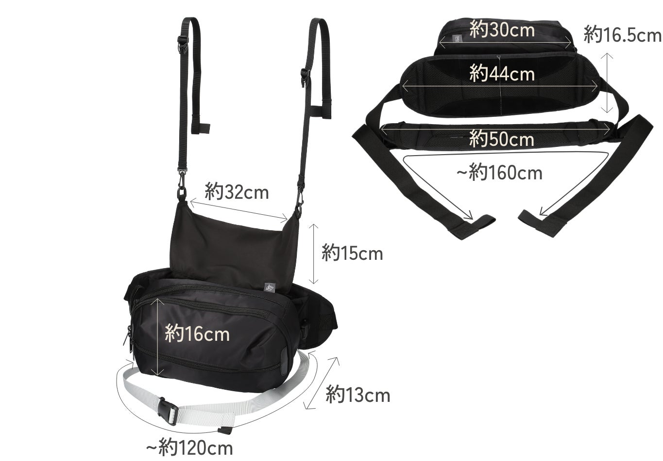 ●付属のウエストベルトを緩める際は、お子さまが支持されていることをご確認ください。