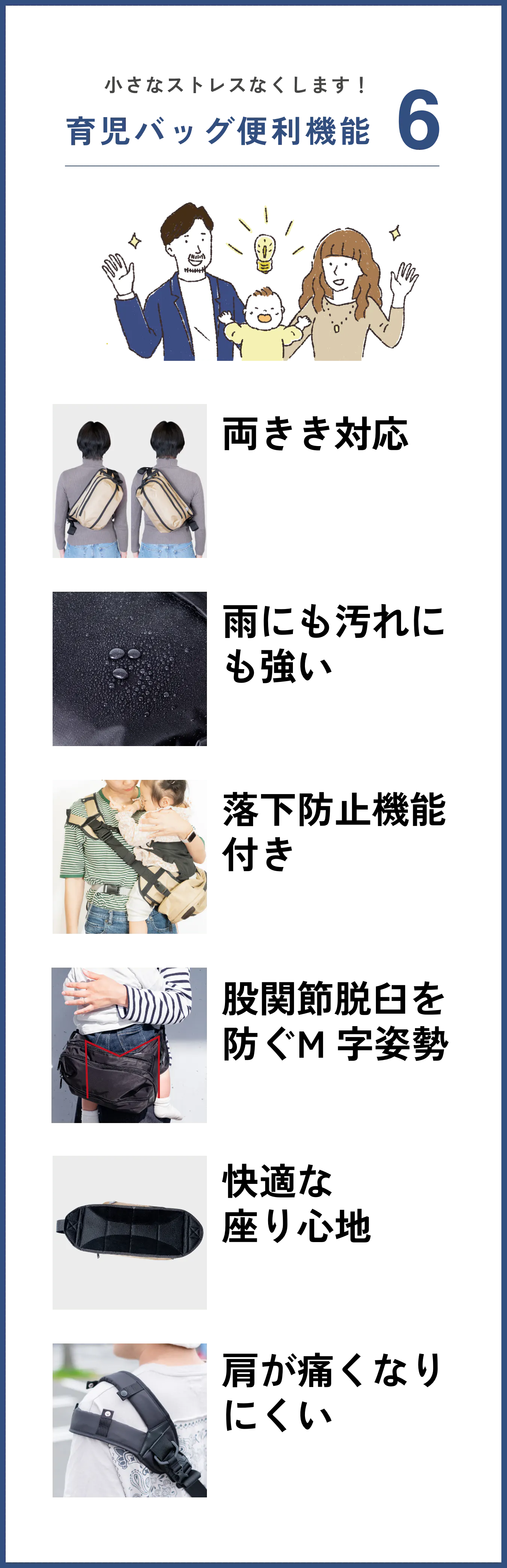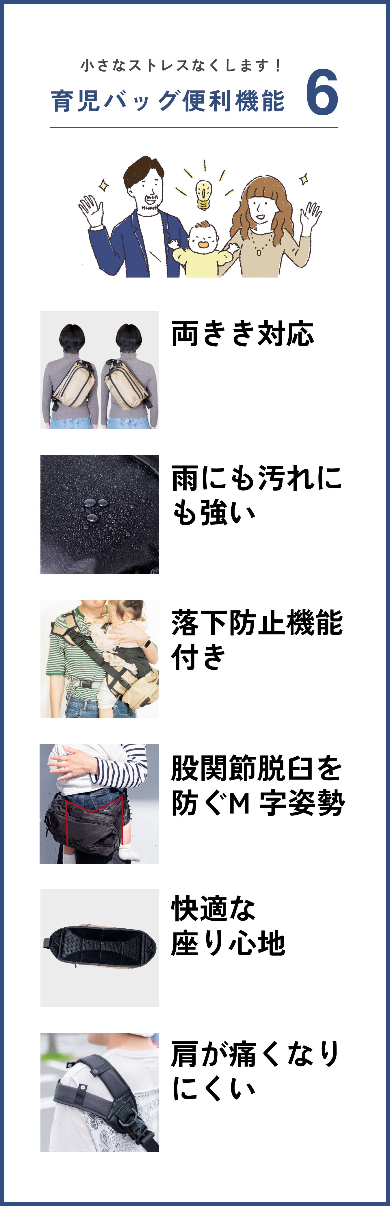このタイプのデザインの抱っこバッグは、お子さまを乗せると荷物を取り出しにくくなりませんか?