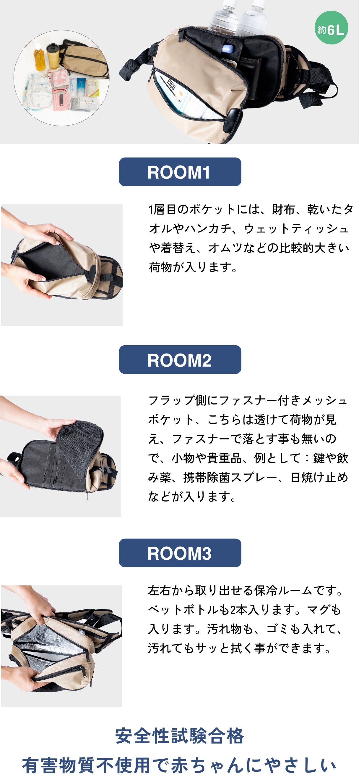 濡れた衣類や使ったウェットティッシュも分けて収納できる3ROOMタイプです。