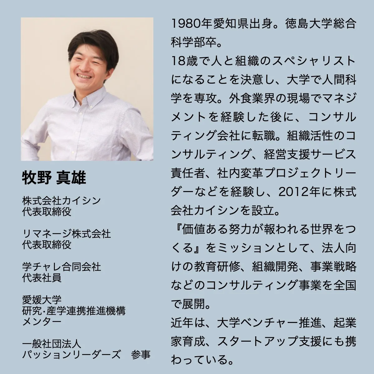 はじめまして、株式会社カイシン代表取締役の牧野真雄と申します。