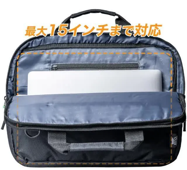 ノートパソコンのサイズは最大15インチまで対応しています。