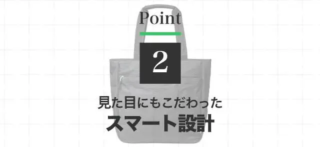 物を入れても太りにくく、スマートさをキープできるのは、シンプルな設計だからこそなせる技。使い勝手を意識した機能美がここに詰まっています。