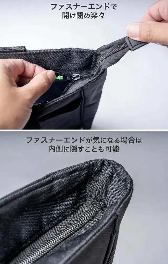 ファスナーエンドの構造にもこだわり、使い勝手と見た目にもこだわったスマートな設計となっています。