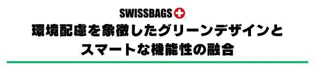 また、環境に配慮した素材を使用して作られたこのバッグには、その象徴としてグリーンのファスナータグとRPETタグを使用。そのアイデンティティを示し、このプロジェクトでは「SWISSBAGSブランド」+「環境配慮型製品のグリーン」=「SWISSGREEN」を表現しています。SWISSBAGSが行き着いた究極のカタチをご紹介いたします。