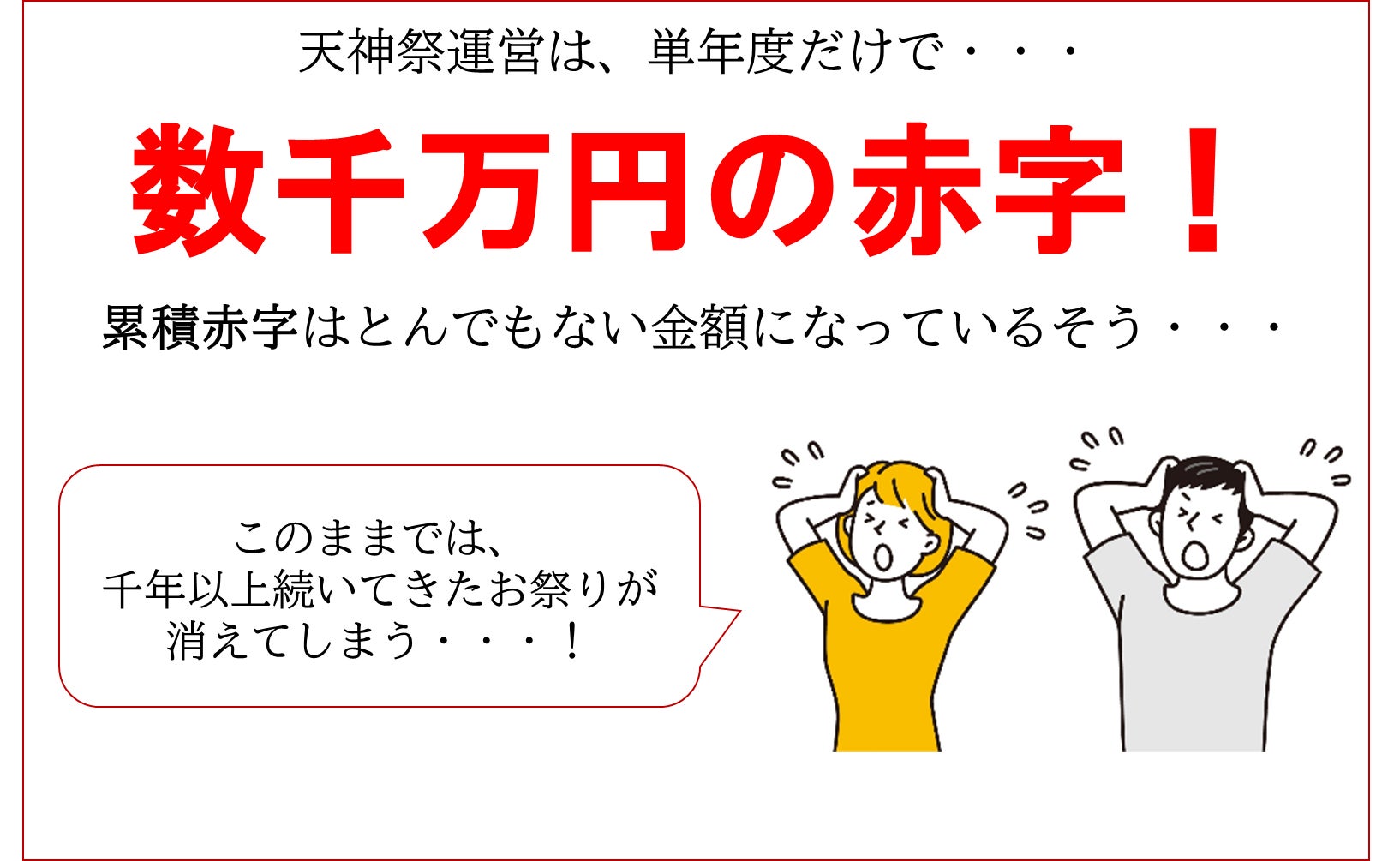 天神祭の運営には多大な経費が必要で、単年度だけで数千万円もの赤字を抱えています。