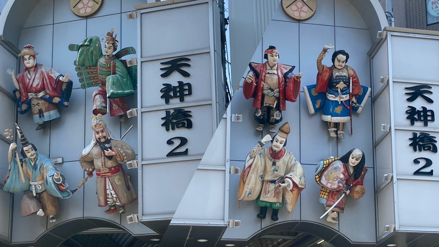 江戸時代、天神祭の船渡御を奉迎するために御迎船が作られ、御迎船を飾り立てるために製作されました。御迎え人形のキャラクターの多くは、大坂町人に人気の文楽や歌舞伎などから採られています。幕末の最盛期には50体を超えていましたが、現在は16体が伝えられています。