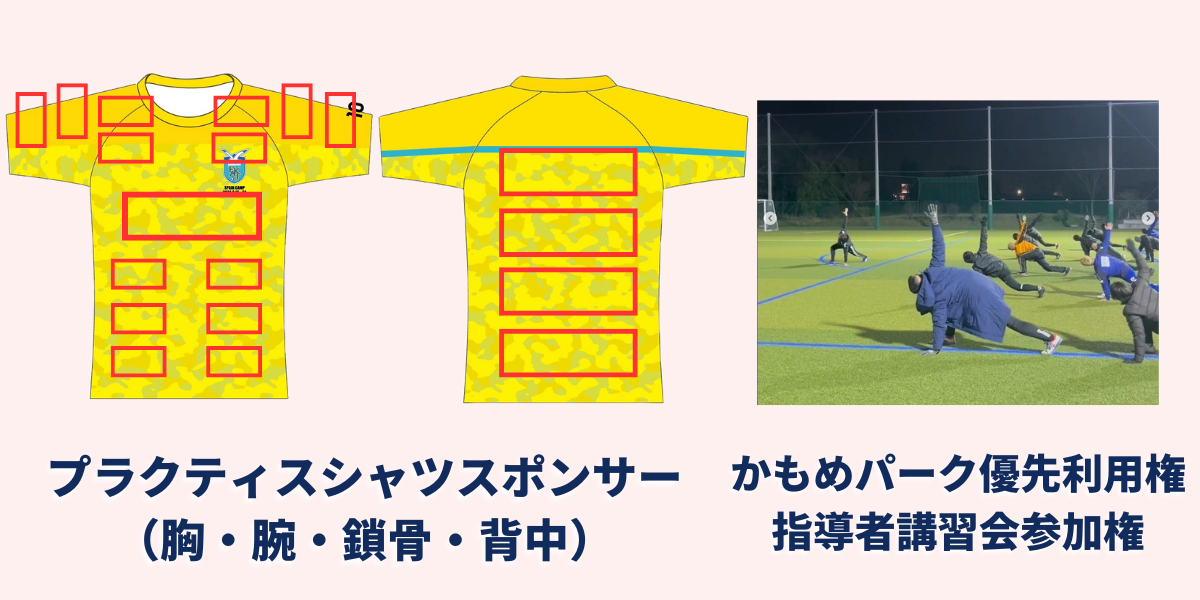 今回のスペイン遠征の動画やチームの活動レポートなどをお送りします。また法人や熱烈な応援者の方向けに、プラクティスシャツに社名を載せるリターンを用意しています。載せる場所は胸、背中、鎖骨、袖になります。2025年度かもめパーク優先利用権や指導者講習会への参加権(定期リフレッシュ研修会)もありますので、チームや指導者の方も支援いただきたく思います。