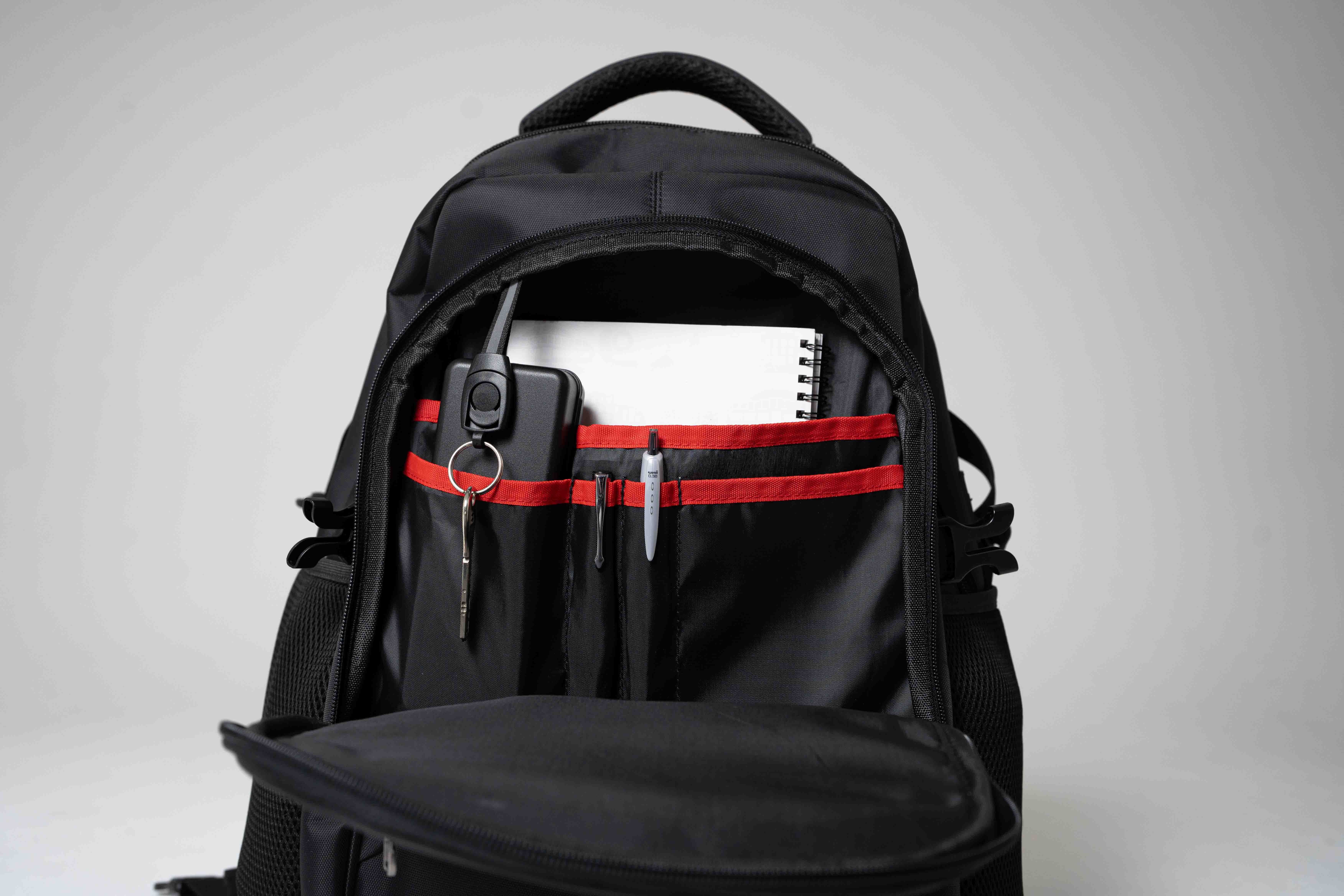 特徴1.多彩な収納ポケットを搭載、リュック内の荷物をすぐに取り出せるよう、多彩なポケットを搭載しました。