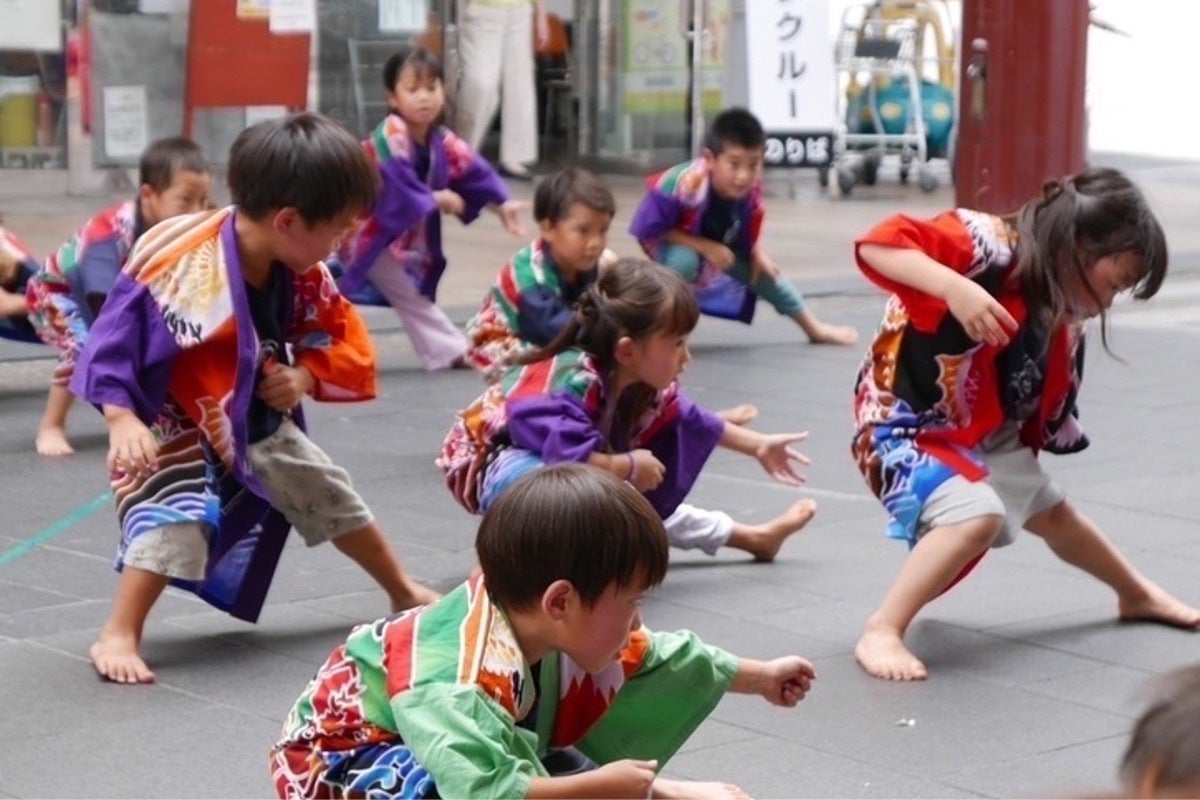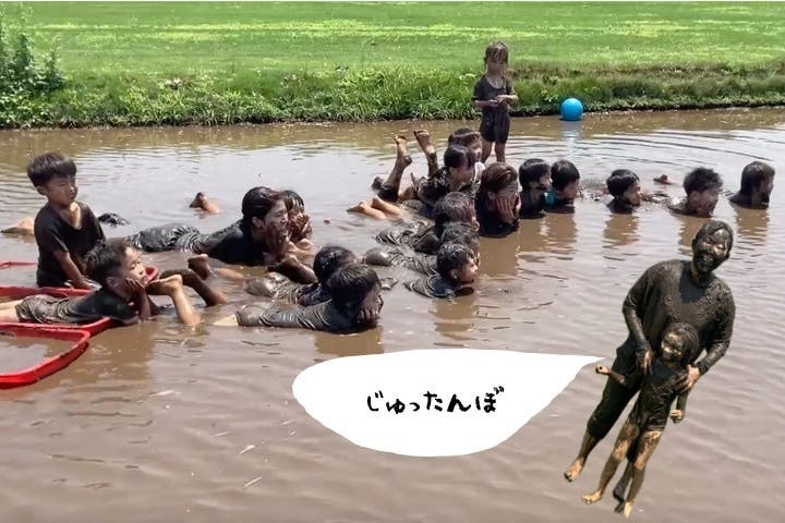 夏になると「さらさら公園」と名付けた澄み切った小川や、毎年保護者が手作りするプールで小さい子も大きい子も遊びます。水が怖い子も夏の間にはすっかり平気になってしまいます。夕涼み会ではご近所の方もご招待して夏の一夜を楽しみます。年長組伝統のソーラン節は近くにある昔ながらの商店街にも遠征し、誇り高く舞い踊ります。小さな子供たちはお兄ちゃんお姉ちゃんのその姿を見て、いつかは自分もかっこいいソーランを!と憧れ、受け継ぐのです。年長さんのキャンプでは、お父ちゃんと一緒に2泊3日、ドラム缶風呂に入り、満点の星空を眺めます。秘密の友達もできたり、時には大切なものを守るための戦いがあったりして、帰ってきた顔はお迎えに行ったお母ちゃんが驚くほどたくましくなっています。
