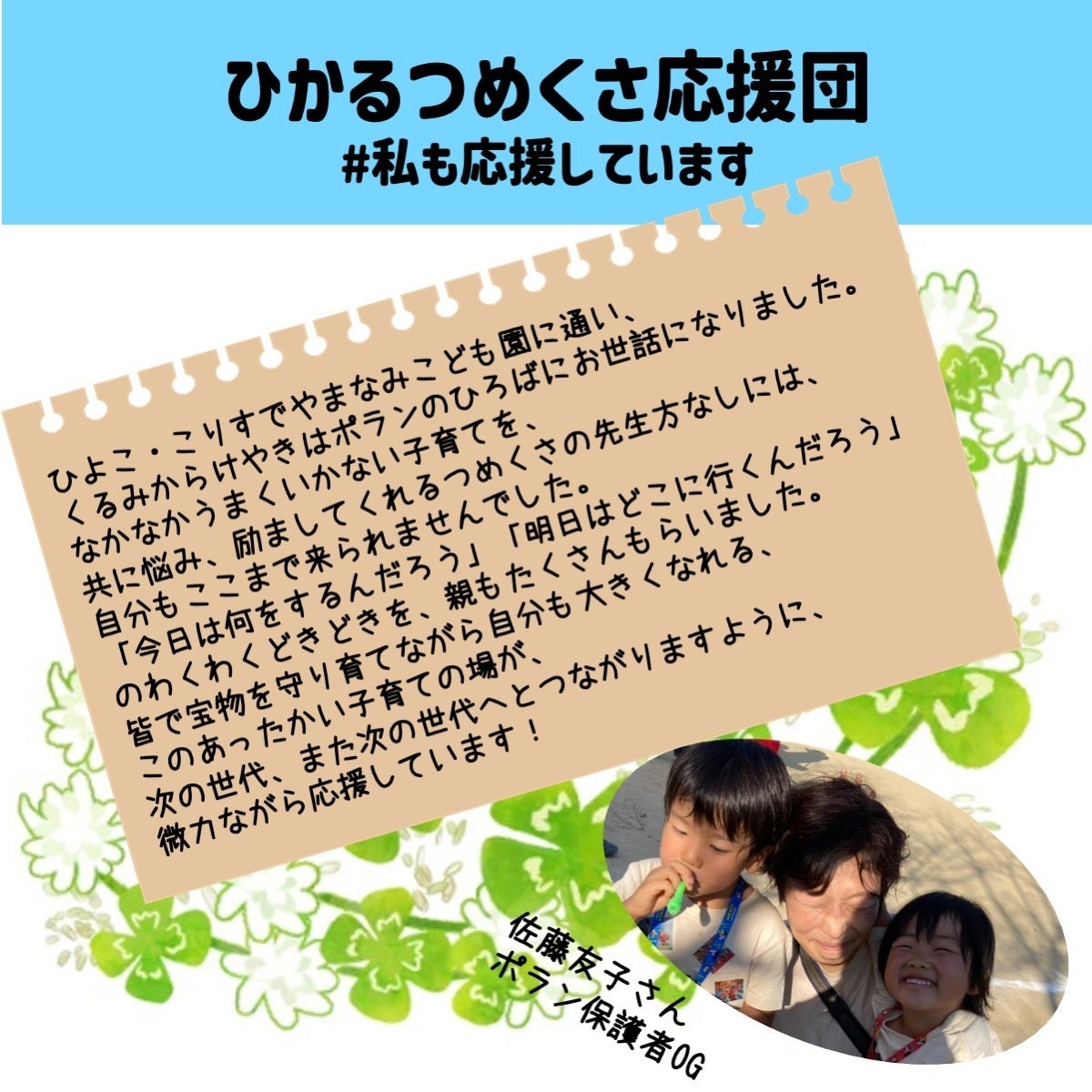 つめくさ応援団からのメッセージです!