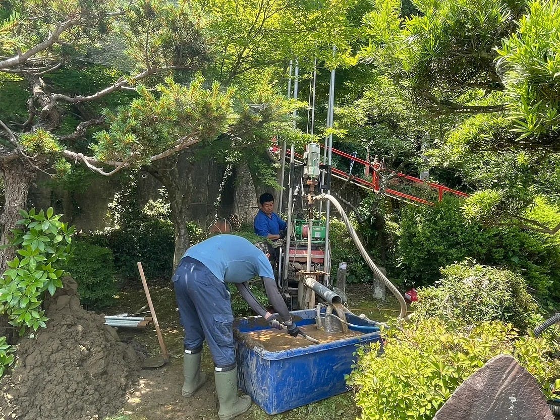 2024/06/28 10:17長年の願いであった水、いよいよ井戸堀りの工事が始まった。真言宗醍醐派の総本山醍醐寺の山は観音様の化身である清瀧権現が降りた峰とされ、そこに湧き出る水を醍醐水として大切にしていますが、神崎寺の境内にも水とエネルギーの湧き出す場所が欲しいと考えてきました。特に神崎の地は地下水と米によって日本酒造りが盛んな土地柄でしたので水の質はお墨付きみたいなものです。もちろん、神崎寺の結界の中に湧き出す泉ですから、龍神様をお宮にお祀りしようとしています。神崎寺の大日山は右(西)のほうから続いてくる峰の東端にあたり東の龍穴にあたります。最高のエネルギ―のあふれだす場所と力のある水となること間違いなし。多くの皆様が井戸掘りと龍神を祀るための勧進に応えてくれて、いよいよ多古町の井戸掘り職人北総地水さんに依頼しました。令和6年6月20日、その井戸堀りがいよいよ始まりました。場所はかねてより、「ここしかない!」と和尚様が決めていた場所です。さて、ホントにこの場所で水は出るのでしょうか? 井戸掘りというのは、もちろん目に見えない土の中を何メートルも掘るのですが、時として、出ない、なのにたった1m横からでることもあるのだそうです。だから、ここは和尚様と龍神様の相性が問われます。和尚様は龍神様に愛されているのでしょうか?少々の心配をしながら見守ります。ドリルマシンが動き始めました。この太さで地中に穴が掘られていきます。龍神様に嫌われないかと心配な和尚様は穴をのぞき込みます。井戸掘りというものは深く掘ればいいというものではないのだそうです。最高の水が出る深さでストップして、「ここだ!」と決め打ちできるかどうかが井戸掘り職人の腕なのだそうです。井戸を掘り始めると、間もなく、おっと!井戸から龍神様がやってくる前に龍神様登場!大きな青大将でした。これは出るぞ!掘り進んでいきます。水が出るところまでは到達しているようです。あとは、どの深さが最高の水の層なのかを見極めていきます。全く判りません。この砂の違いを見て水を読み切るのだそうです。親方に聞いてみると、「決まりました。」と自信のあるひとこと。かっこいい!職人だ!でました!いい水がでました。一発でしたね。和尚様と龍神様の相性は相思相愛のようです。「ここから出てきてくださいね」という場所からしっかり現れてくださいました。水の質はまだ検査していないのですが、調べなくてもわかるような良い水のようです。これからポンプをつけて、電気を引いて、配管をして、いよいよお寺の水が変わります。そして水掛不動に不動滝をつくり、清龍権現の御宮を用意してきちんとお祀りしていきます。お水は命の源として日本では最も古くから大切にされてきた信仰の一つです。現代の便利で豊かになった時代にあっても恵の水が湧き出るということに喜びと感謝を忘れることなく大切にお祀りしていきたいと考えます。清龍権現宮を祀るまではまだまだ道のりがありますが少しづつでも確実に実現していきます。皆の努力で勧請することができた龍神様を後世に伝えるように、思いが形となって残っていくように頑張ってまいりましょう。どんな味のお水でしょう?どんな滝になるのでしょう?どんな御宮が祀られるのでしょう?楽しみがとまりません。みんなも神崎寺に来て、確かめてください。 もっと見る