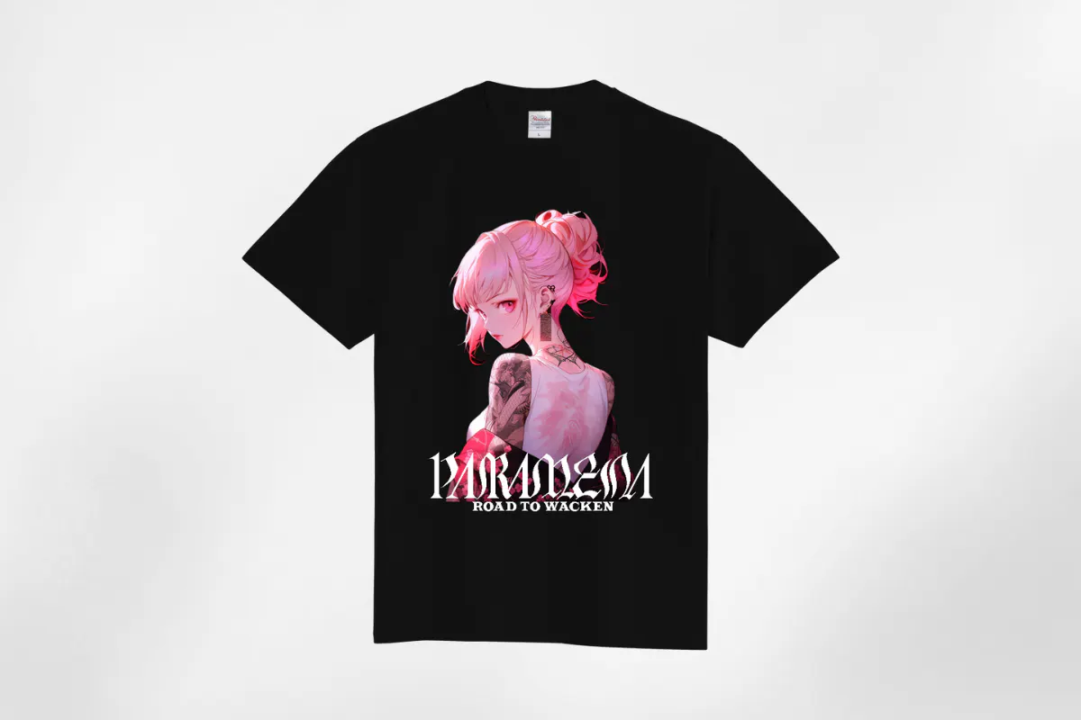 2024/6/7のPARAMENAライブにてこれまで発売していたアニメTシャツが完売したことを受け、追加リターンおよびWACKEN現地での販売用として、追加デザインを緊急でご用意しました!"ROAD TO WACKEN"の文字があしらわれた特別なTシャツです!当クラウドファンディング最後の追い込みとして、ぜひ購入を検討いただければ幸いです。
