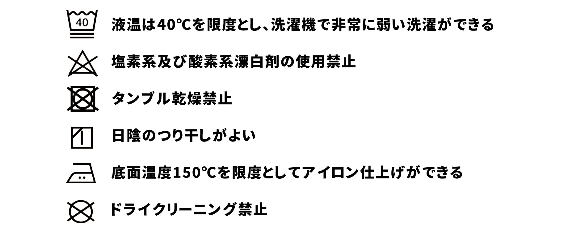 ・長時間の浸け置きは避け、洗濯後は放置せず形を整えてただちに干して下さい。