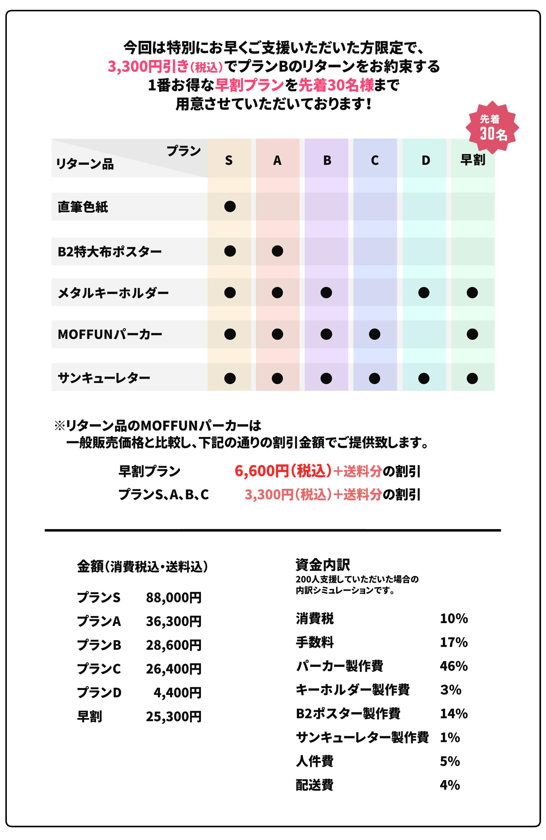 ※本文中に記載させていただいたスケジュールは、あくまでプロジェクト公開時点の予定です。ご支援の性質上、配送遅延のおそれがございます。原則として、配送遅延に伴うご支援のキャンセルはできませんが、リターン配送予定月から8ヶ月を超えた場合には、希望者に限りキャンセルにて対応させていただきます。