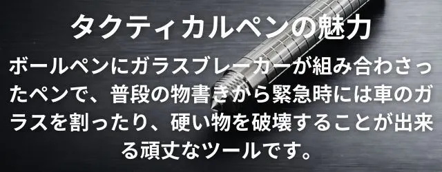 キーホルダーとしてボールペンとガラスブレーカーを常に携帯出来て大変便利。