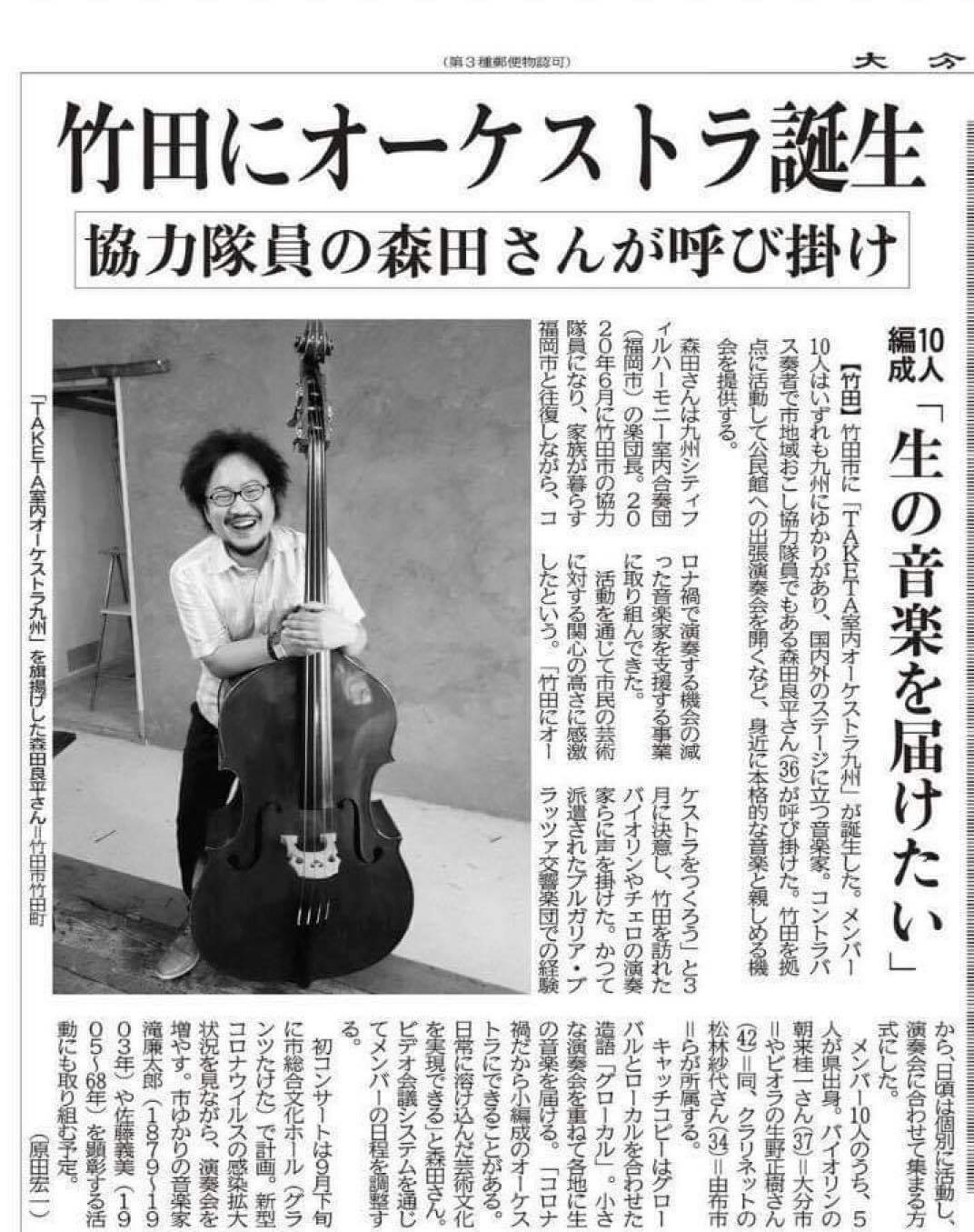 コロナ禍の2021年に大分県ゆかりの音楽家を中心に瀧廉太郎ゆかりの街・竹田市で創設された大分県で初のプロオーケストラ