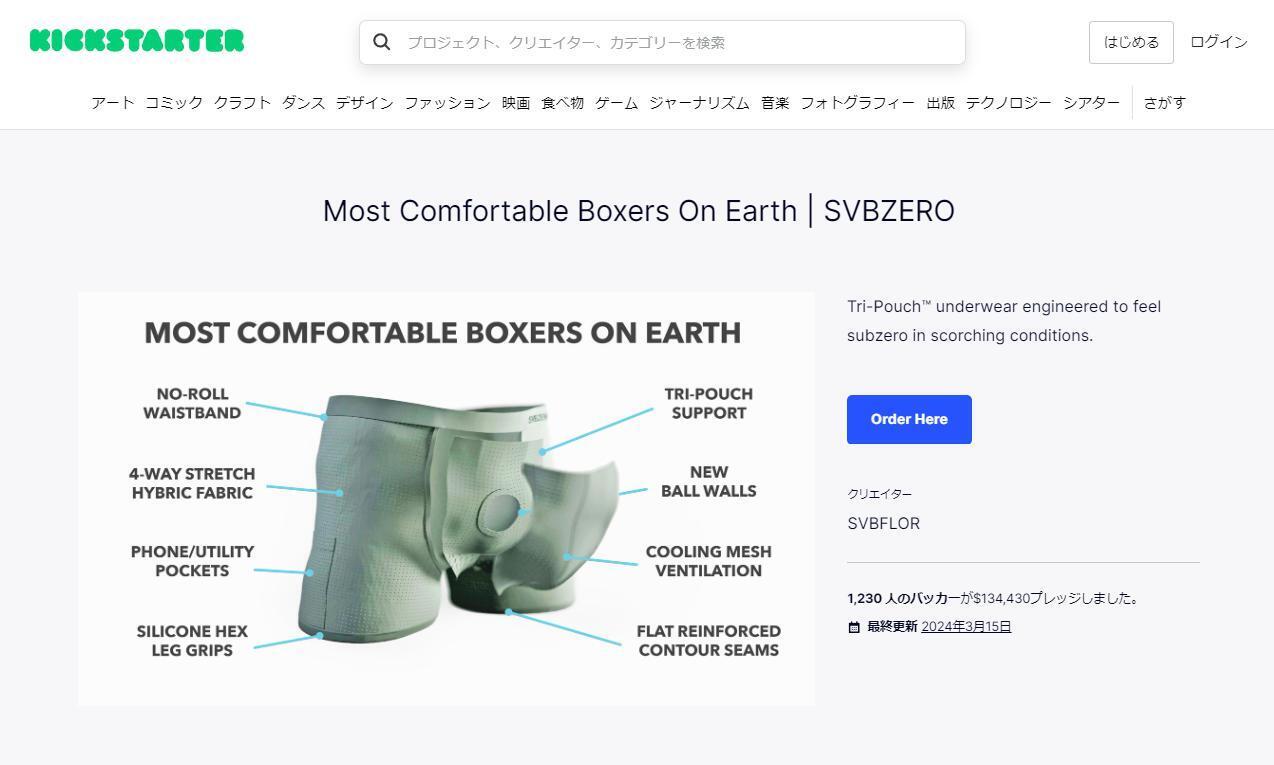 海外最大級のクラウドファンディングプラットフォームである『Kickstarter』で1230人もの支援者から2000万円以上を集めた男性用アンダーウエアSVBZEROが日本上陸!